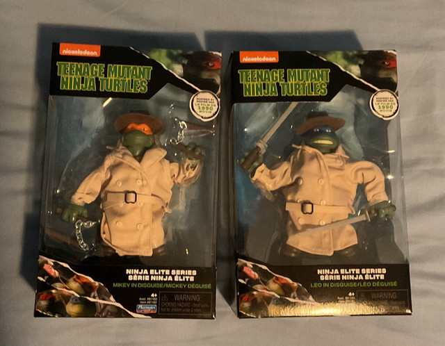 Sealed Tmnt Mikey & Leo in disguise Playmate action figures inspired by the 1990 film. Looking to sell together for $40 cash. Will send more detailed photos upon request. Door pickup please. Thanks.