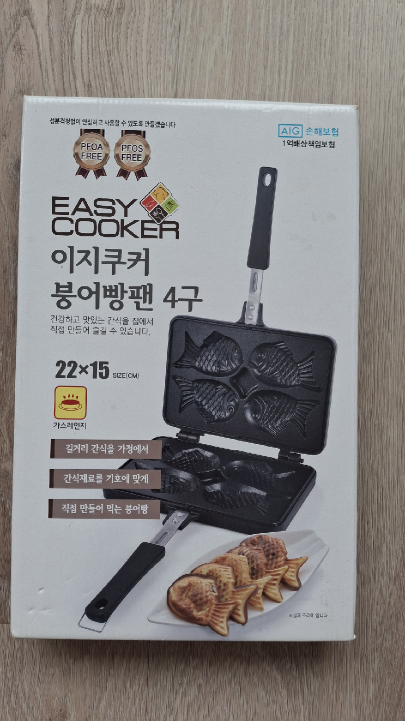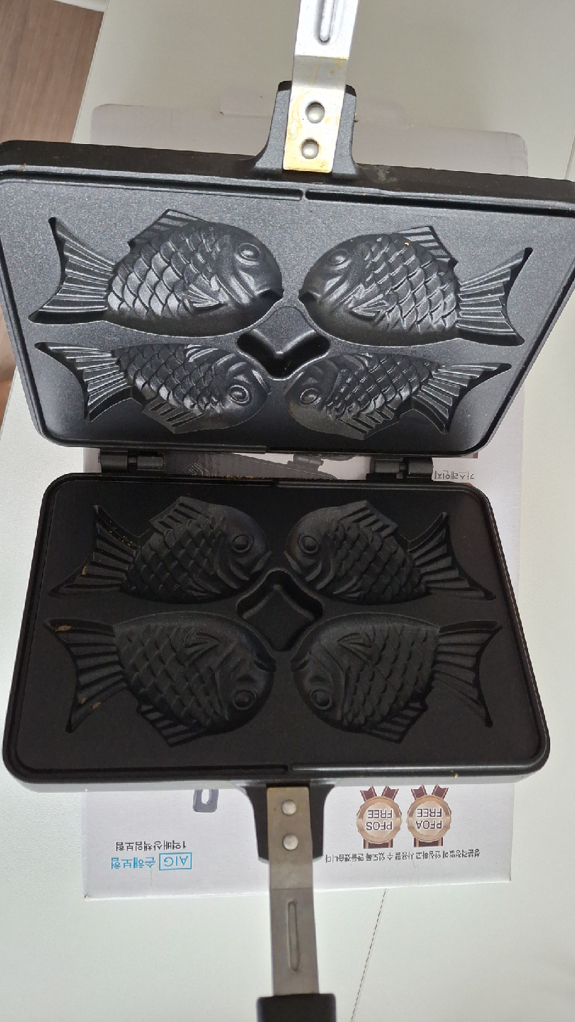 I'm selling a Easy Cooker fish-shaped bread pan! It makes 4 fish-shaped breads at once. The size is 22 x 15 cm. It's compatible with gas stoves and is PFOA and PFOS free.