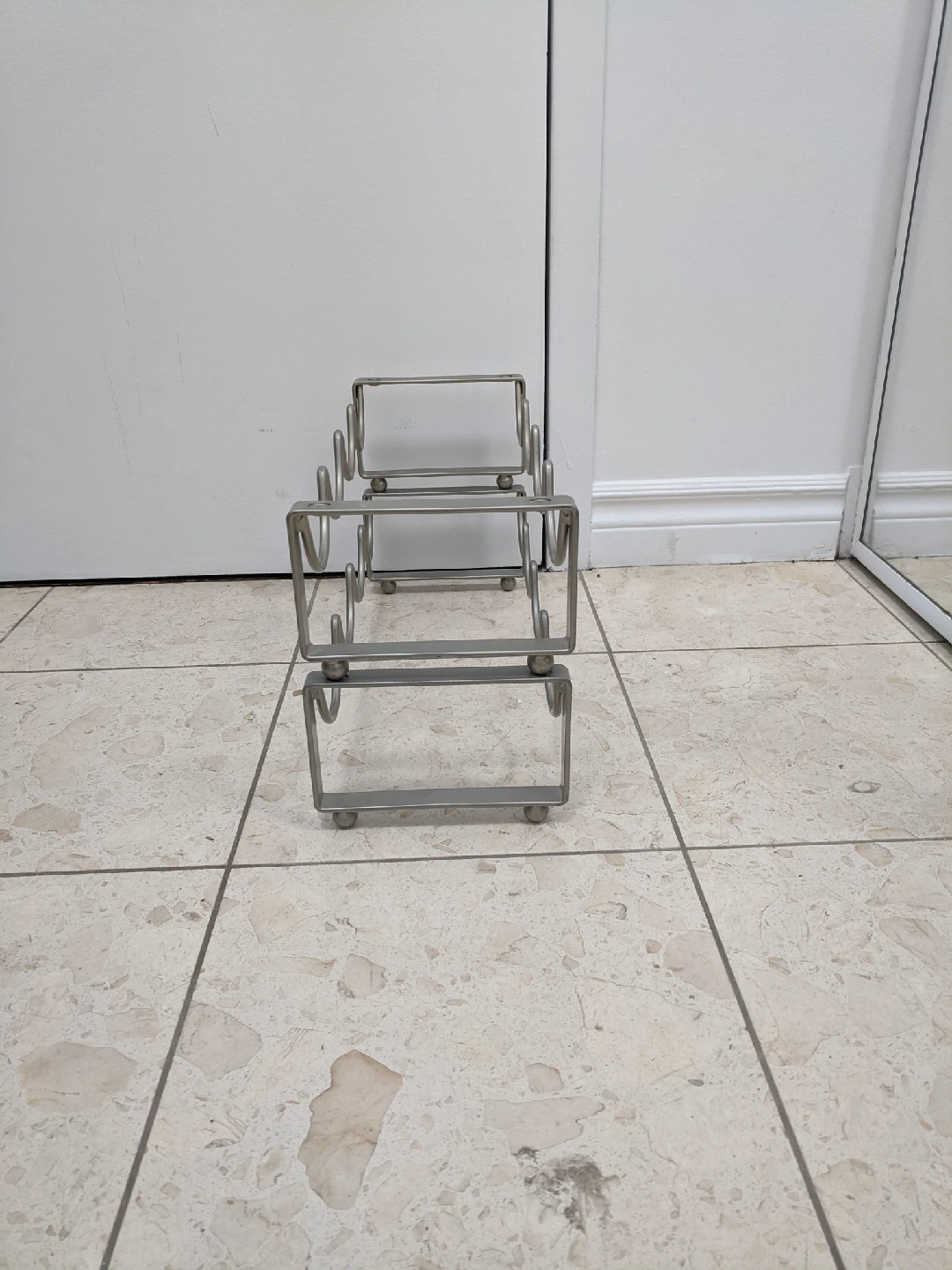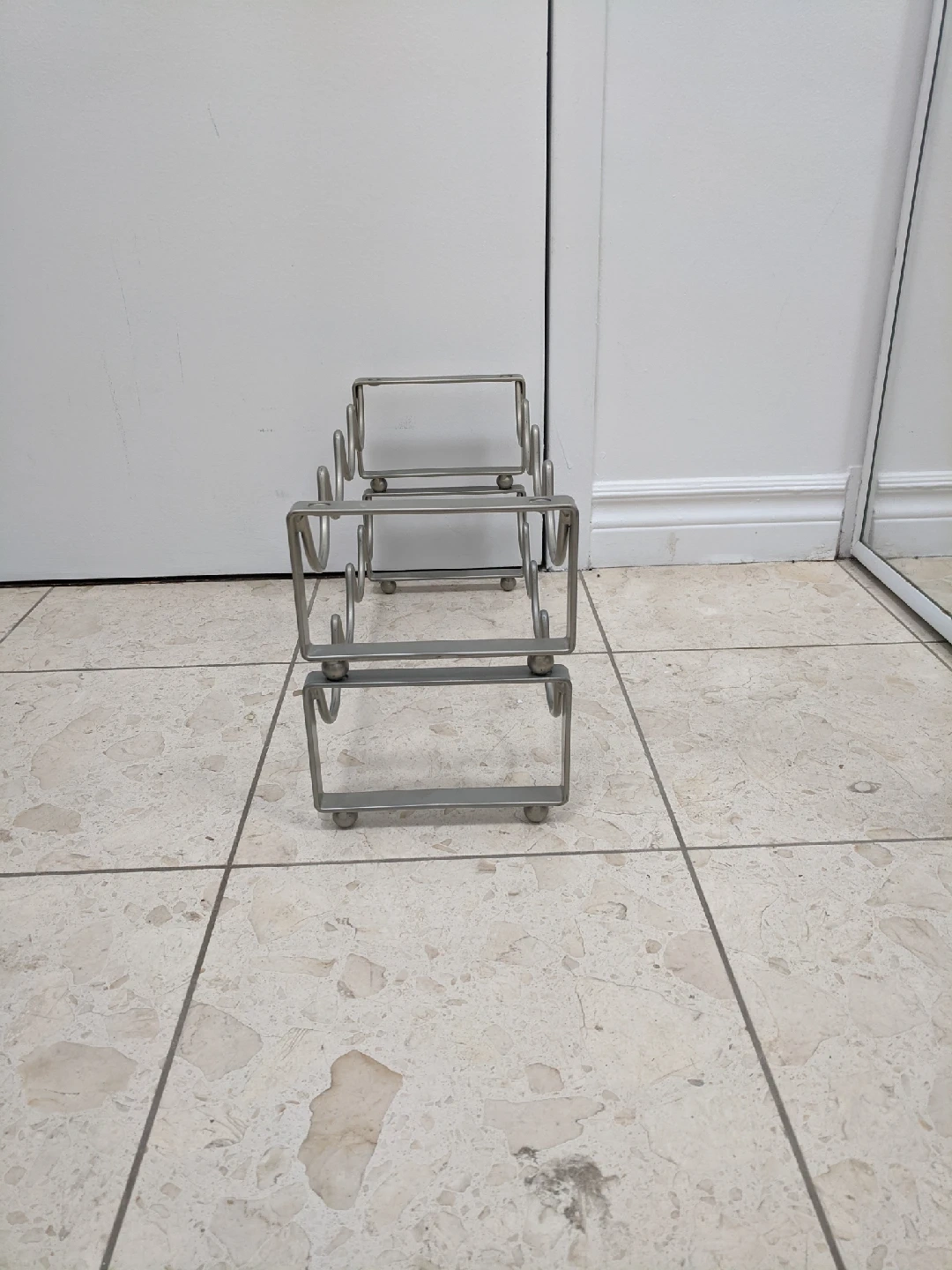Here's a metal wine rack that can hold up to 8 bottles! It's in great shape and ready to add some organization to your space. very strong! Pick up at 195 Merton Street Toronto or pick up at subway station Davisvill. And I can deliver it to your house but you need to pay me another $3. Thanks