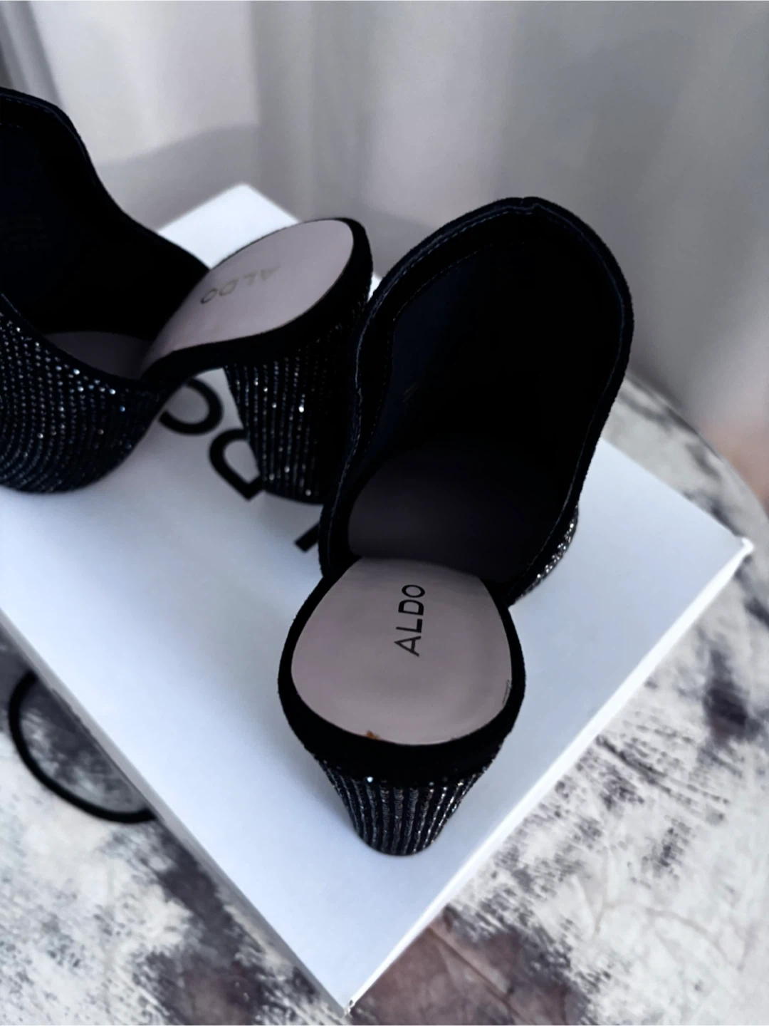 Aldo Etalisien Black Rhinestone Mules - Size 7