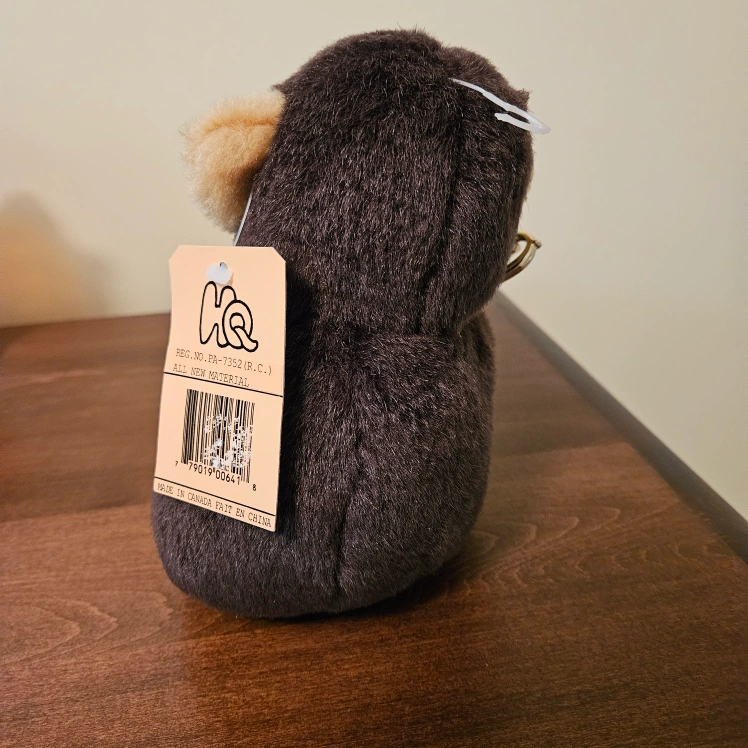 This adorable HQ monkey plush toy is ready for a new home! It's surface washable and recommended for ages 3 and up. The monkey is holding a cup and a banana. It's in great condition and made of all new material
