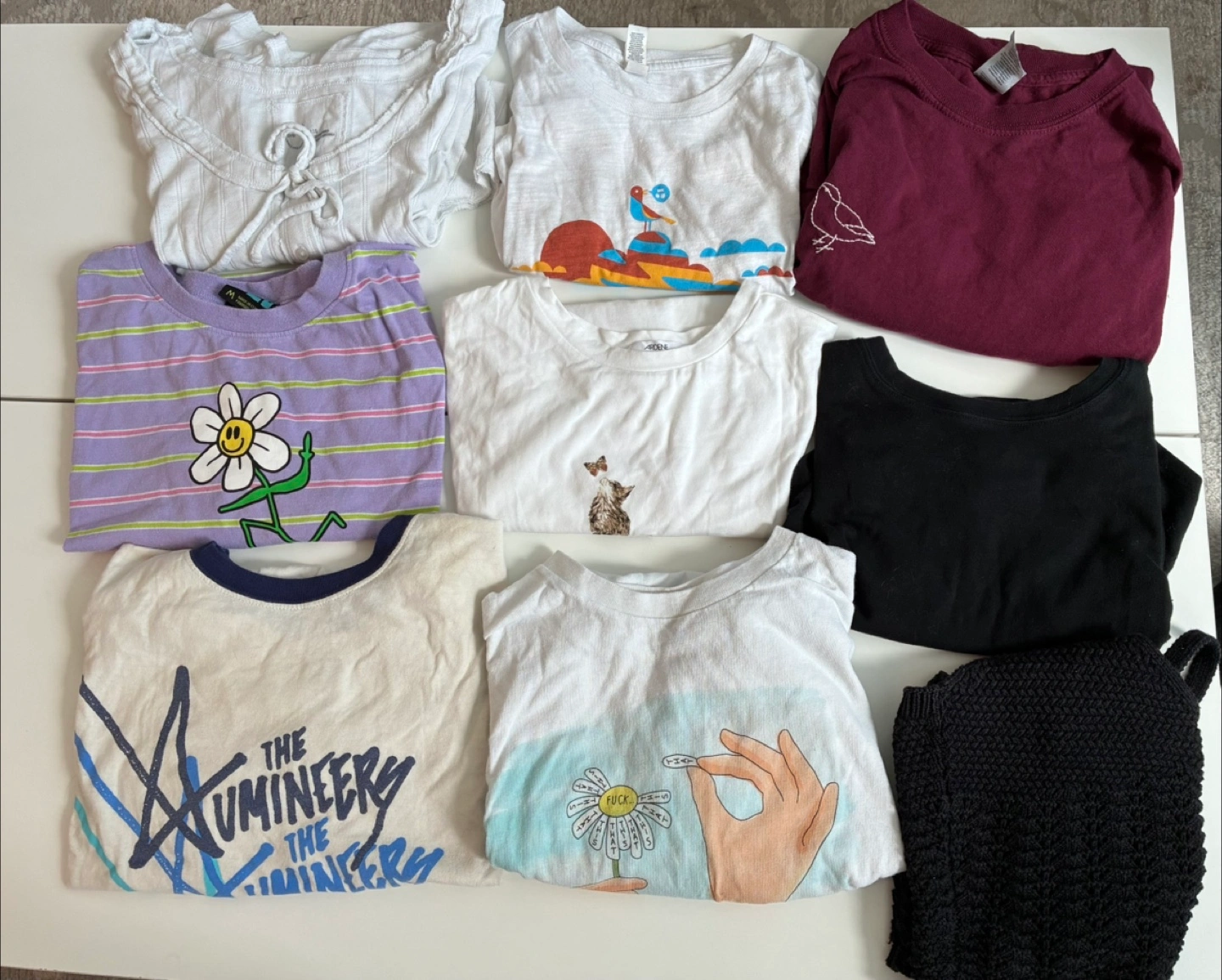 All items are gently used. Includes 9 t-shirts, 3 pairs of shorts and 1 pair of warm fleece pyjamas. Come as a bundle, not giving away individual items.