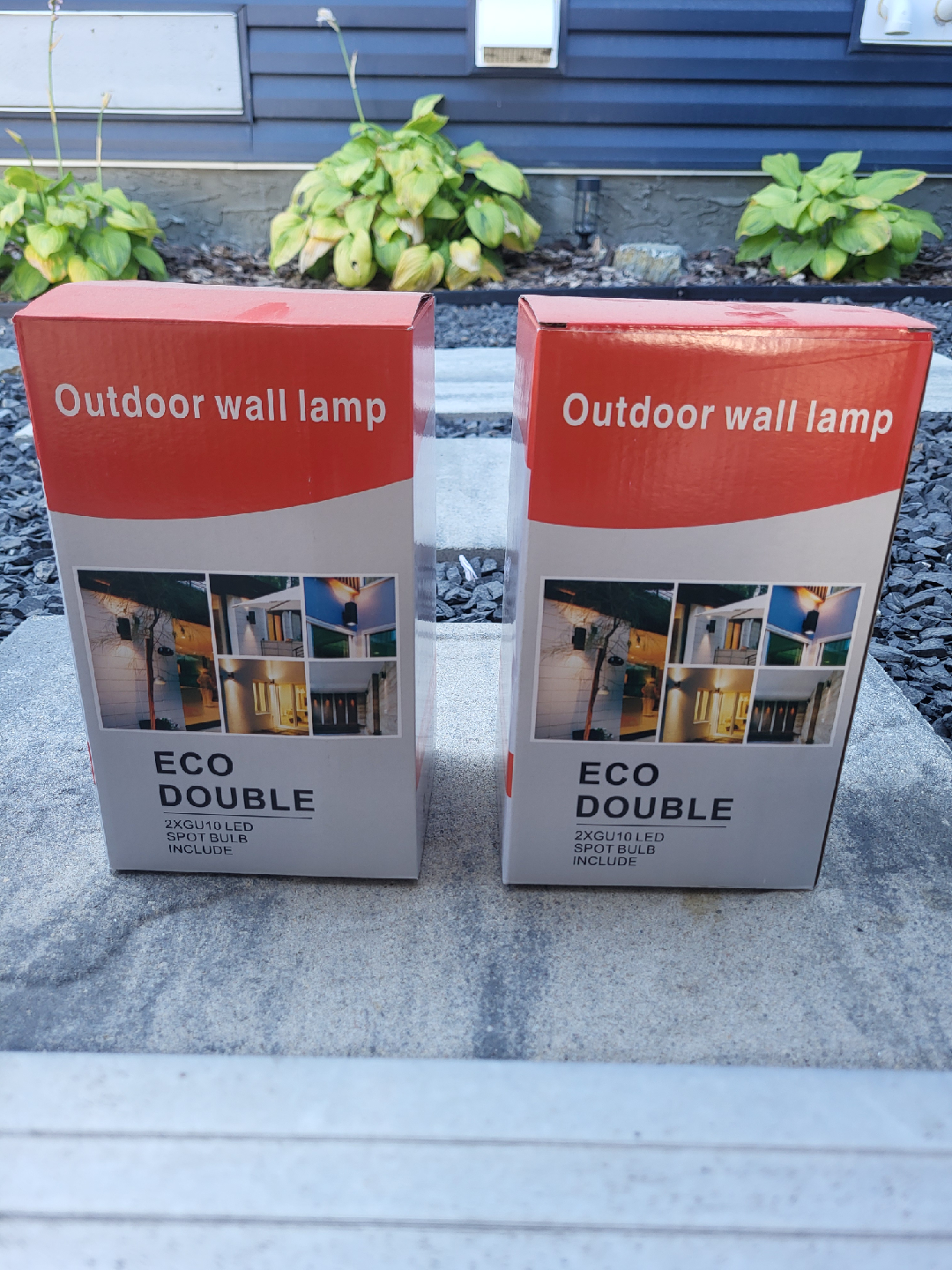 I'm selling two new motion-sensor outdoor wall lights- ECO DOUBLE model. It comes with 2xGU10 LED spotlight bulbs. The assembly and installation instructions are also included, along with the box. It's ready to brighten up your outdoor space!