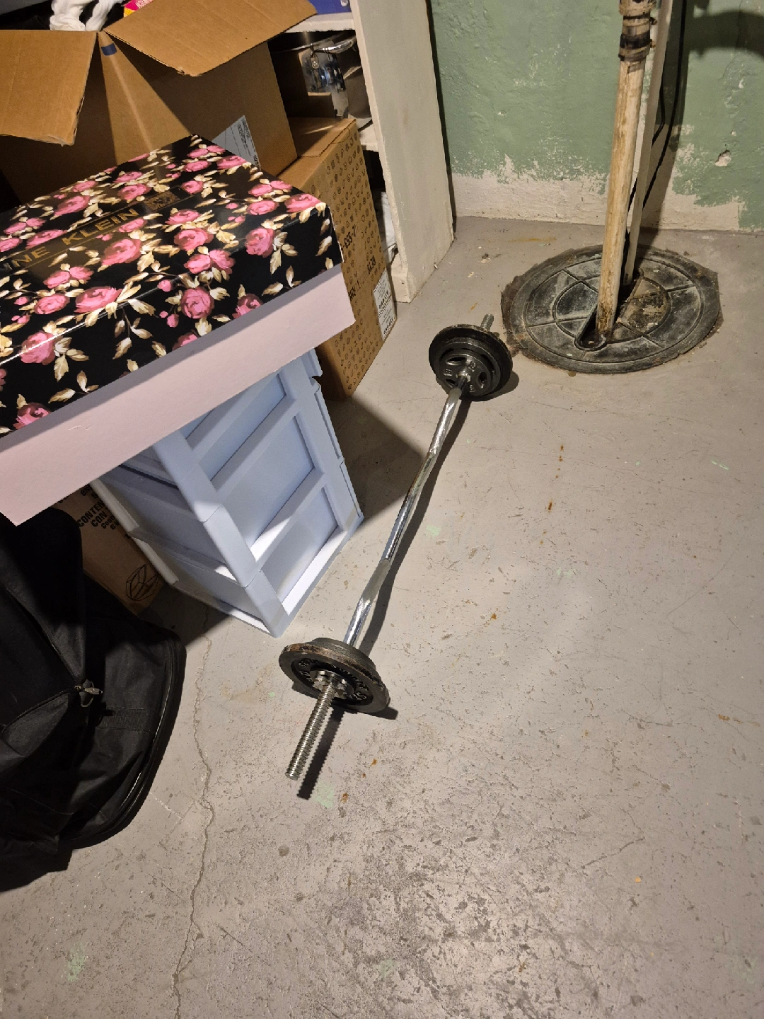 Selling a weight barbell set. It's in good condition and ready for your home gym! Perfect for strength training and building muscle. Get in shape with this durable and reliable piece of equipment