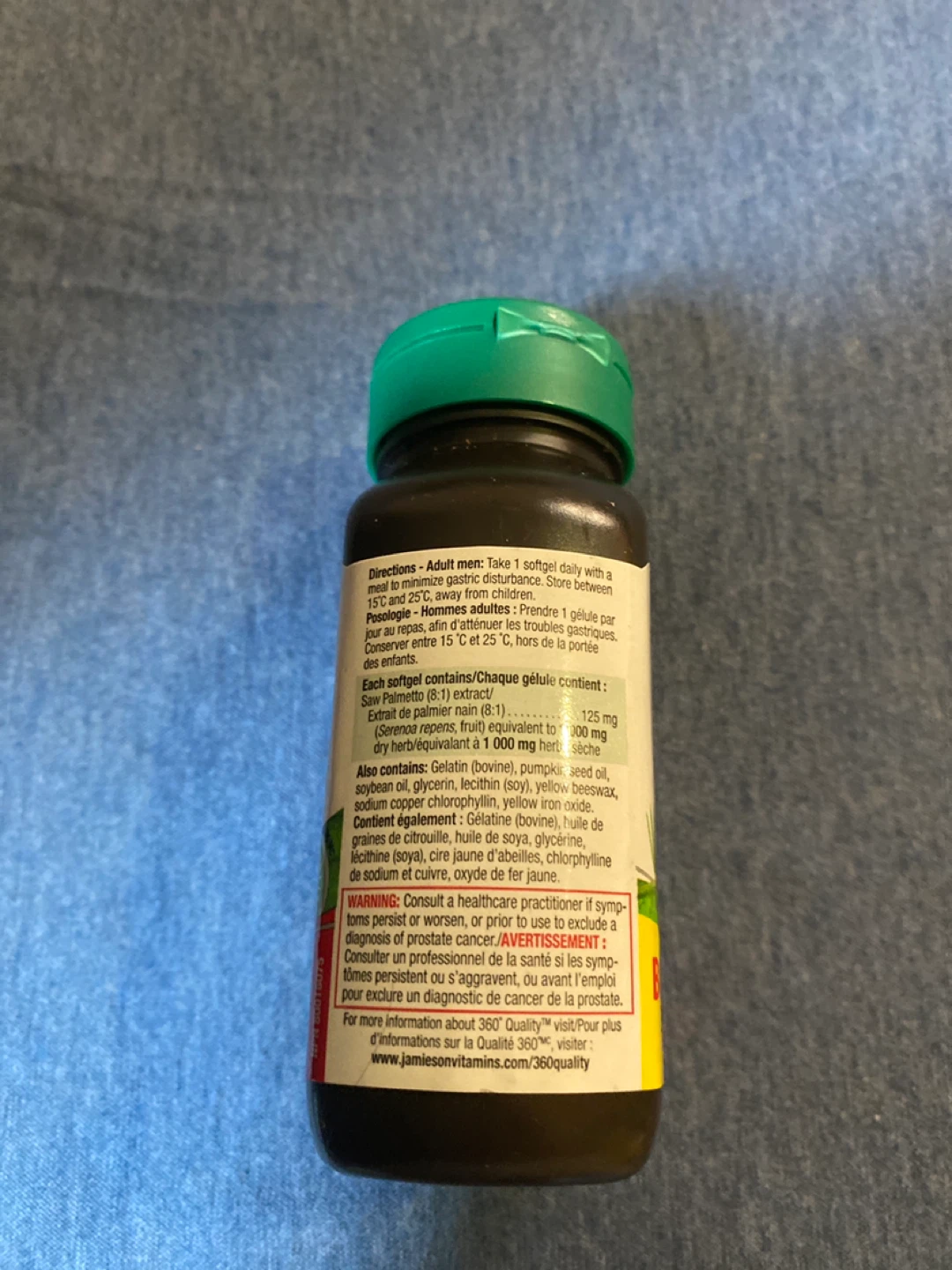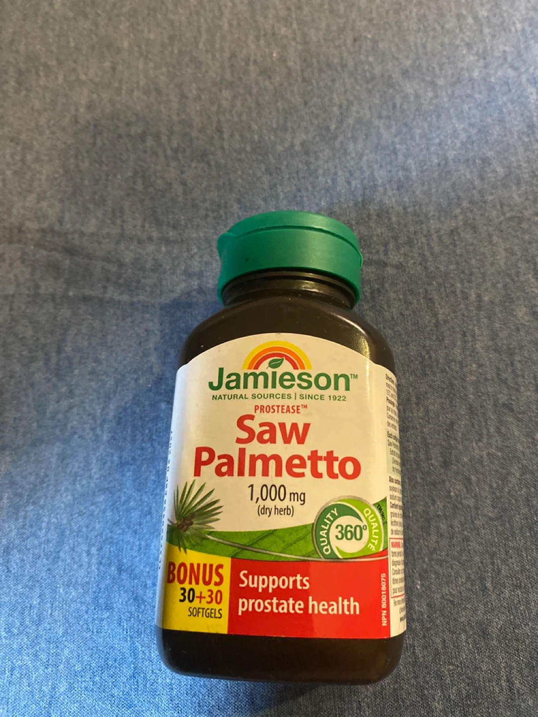Selling a bottle of Jamieson Saw Palmetto, 1,000mg (dry herb). It supports prostate health and comes with a bonus of 30+30 softgels. Expiry date is February 2027