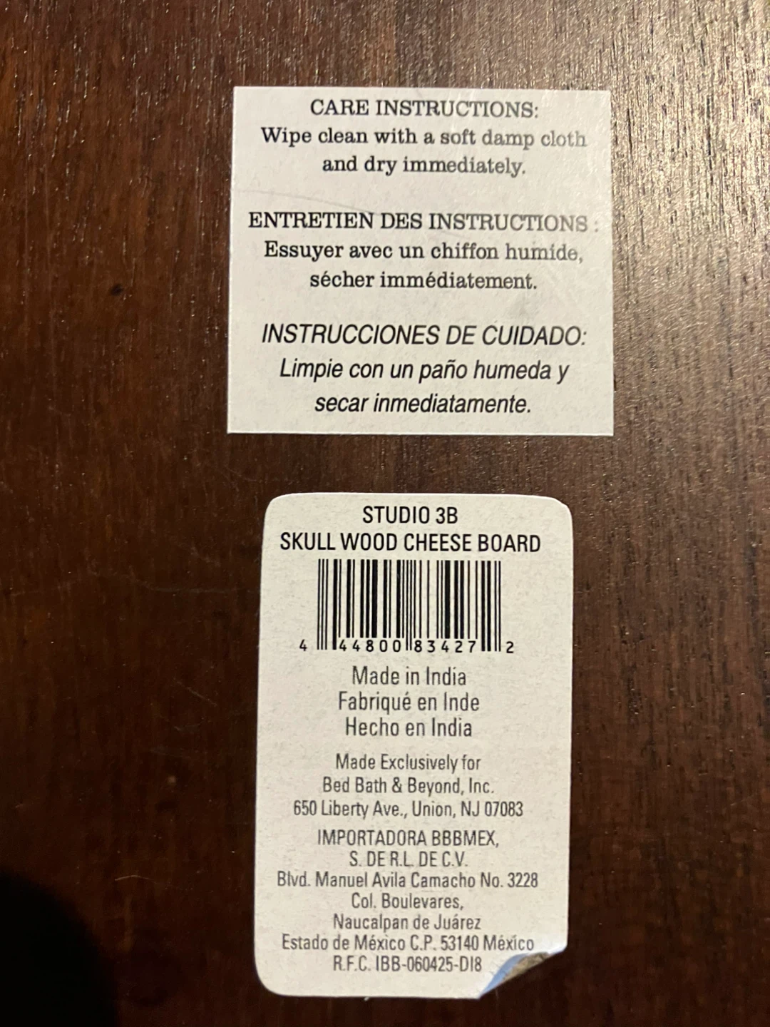I'm selling a Studio 3B skull-shaped wood cheese board. It's perfect for Halloween or just adding a bit of spooky fun to your kitchen. Care instructions are included: wipe clean with a soft damp cloth and dry immediately. Cash and pick up only!