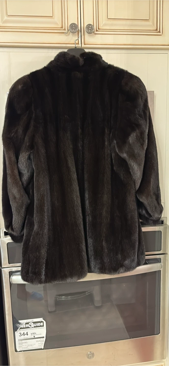 Selling a beautiful Blackglama dark ranch mink fur coat! This coat is in great condition and features a luxurious lining. It's a timeless piece that will keep you warm and stylish during the colder months. Feel free to ask any questions!
