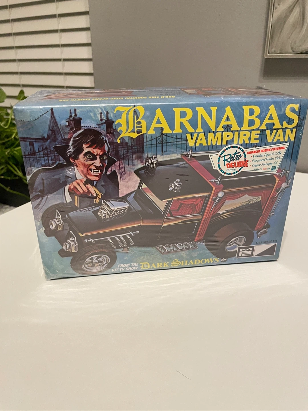 Selling a Barnabas Vampire Van Retro Deluxe Edition model kit! It's still sealed in the original packaging. A cool piece for any model car enthusiast or Dark Shadows fan!