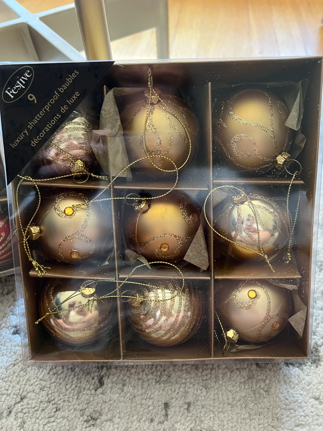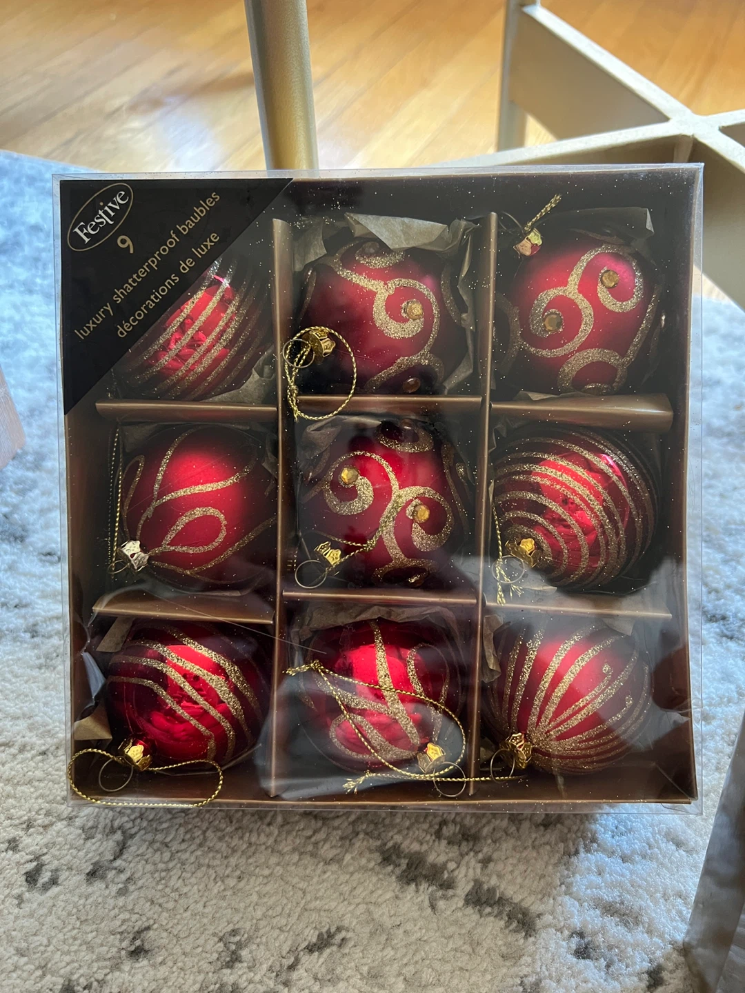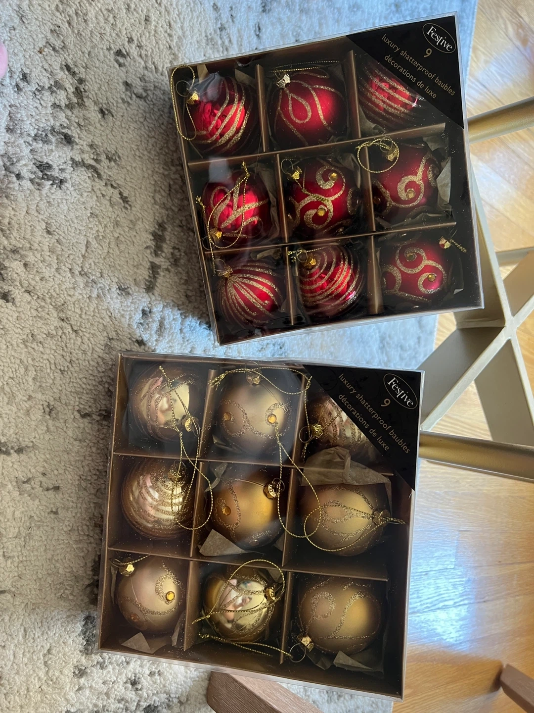 Selling a set of Festive luxury shatterproof baubles! Each box contains 9 baubles. Available in red and gold colours, these decorations are perfect for adding a touch of elegance to your holiday decor