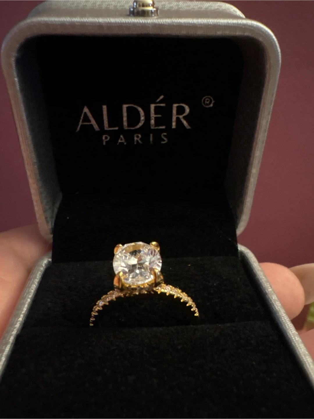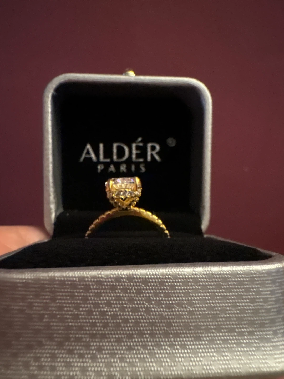 Selling a beautiful gold S925 egg shape Moissonite ring from ALDER Paris! It comes in its original box. New