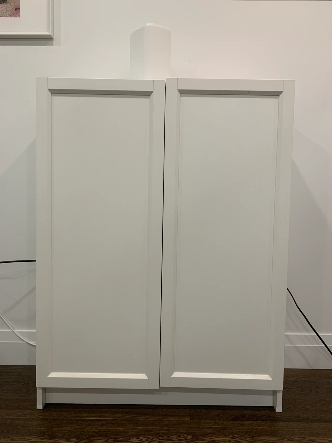Selling a white cabinet, perfect for extra storage! It's in great condition of adjustable shelves.