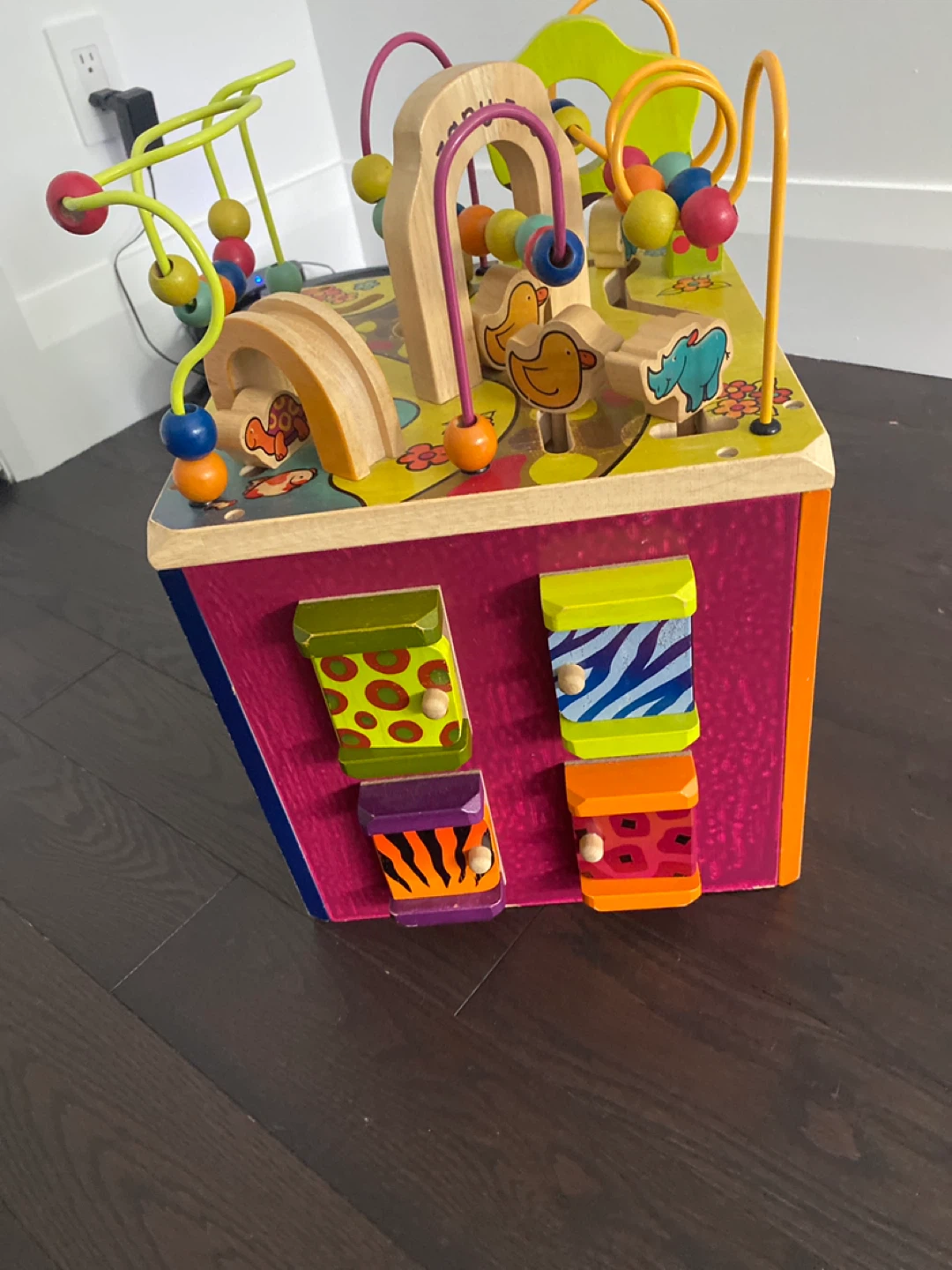 Wooden Activity Cube: Explore five sides of fun and learn about a ton of animals with our wooden activity center!