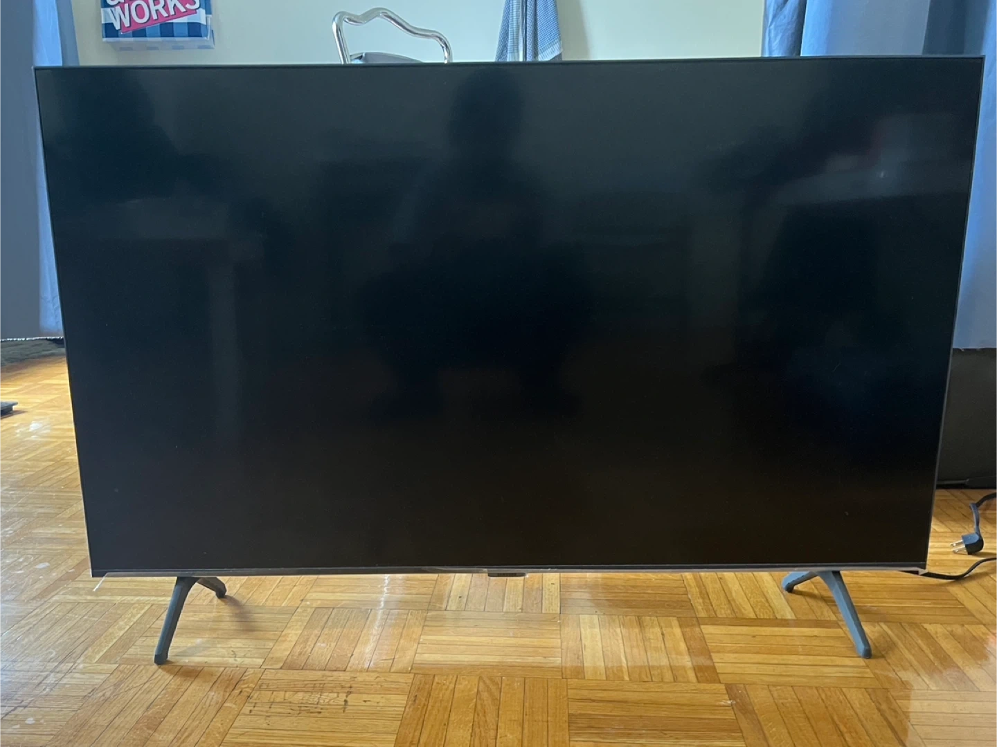 Selling a large screen TV, perfect for movie nights or gaming! It's in great condition and ready to find a new home. It has a sleek design that fits well in any living room