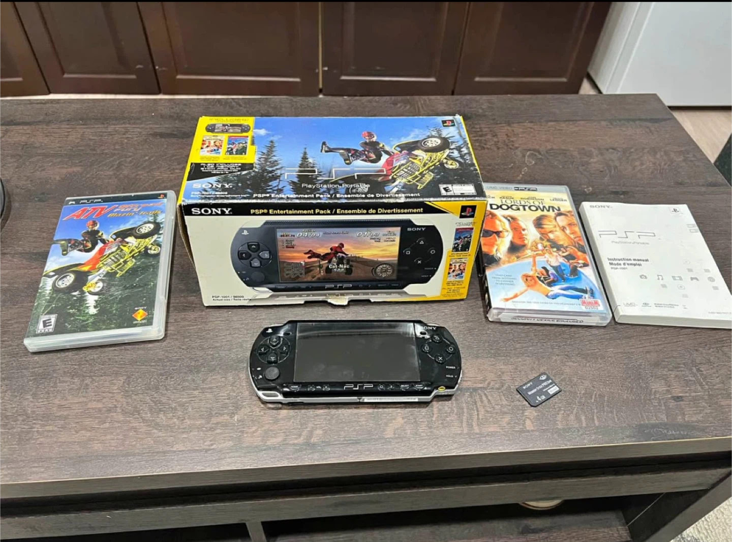 Selling a Sony PSP Entertainment Pack! It comes with the original box, instructions, and two games: ATV Offroad Fury and Lords of Dogtown. A memory card is also included so you can save your progress. Great for some retro gaming!comes with charger.