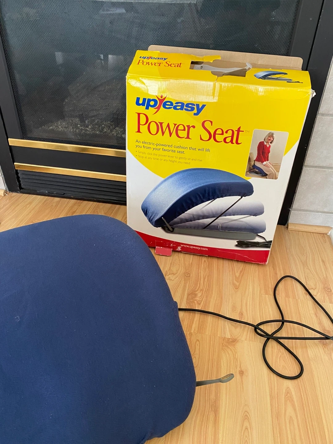 Selling an UpEasy Power Seat! It's an electric-powered cushion that will lift you from your favorite seat. Simple to use at any time or any height you need. Comes with the original box