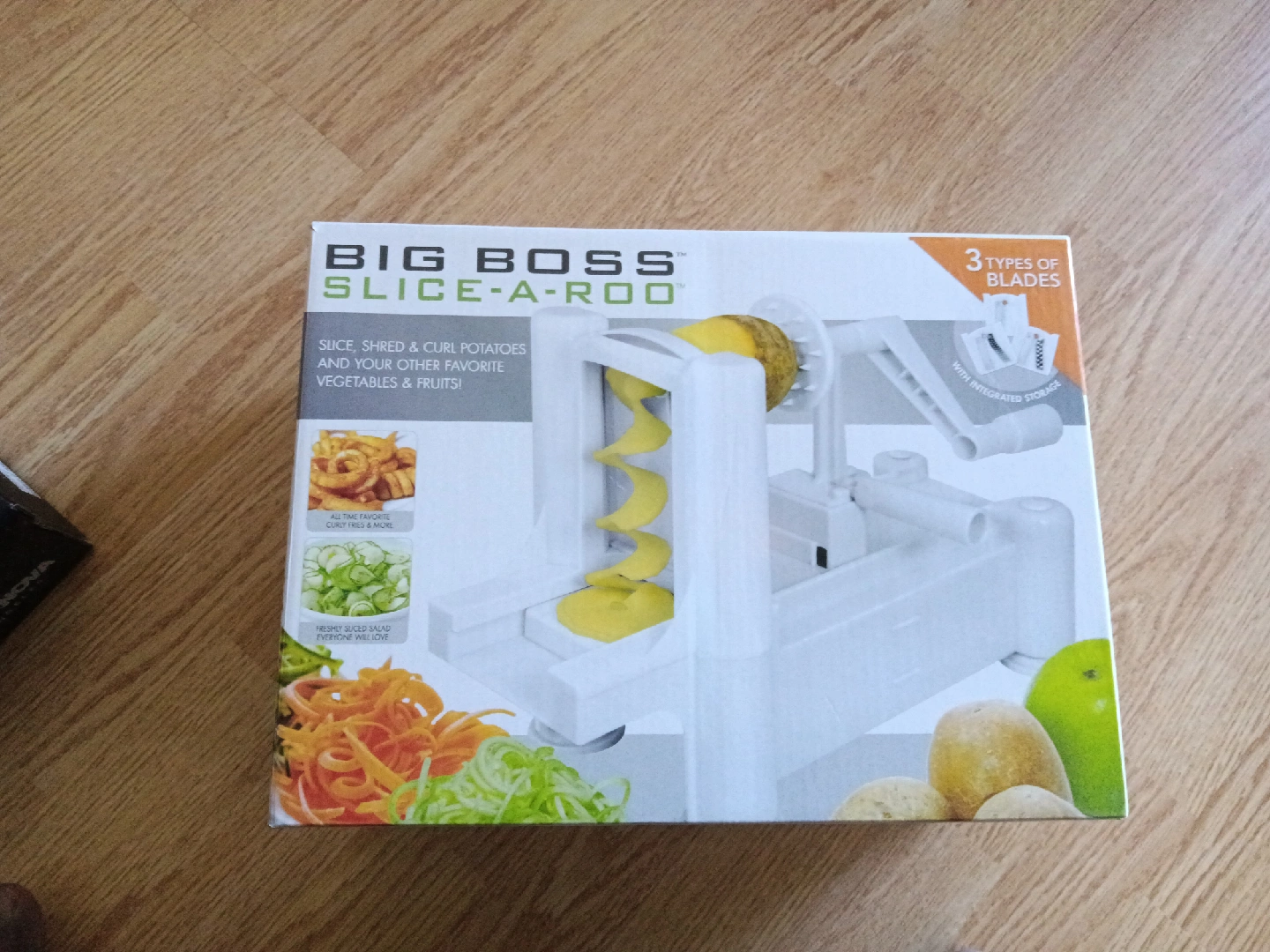 I'm selling a Big Boss Slice-A-Roo! This handy tool lets you slice, shred, and curl potatoes and other veggies. It comes with 3 types of blades and integrated storage