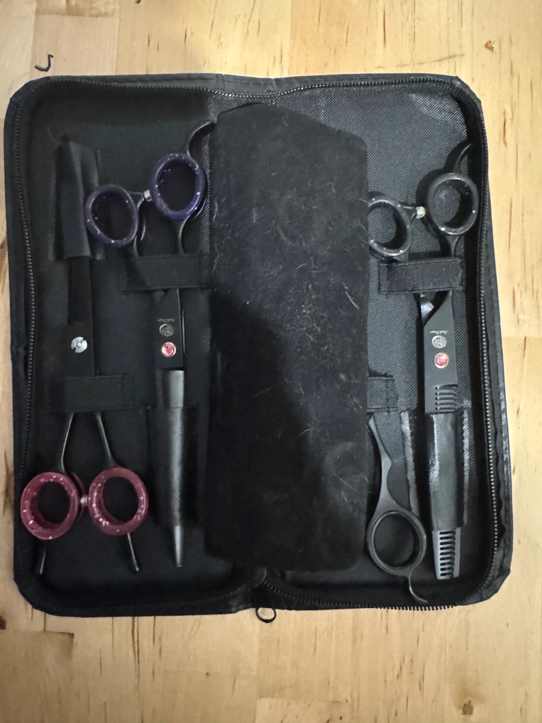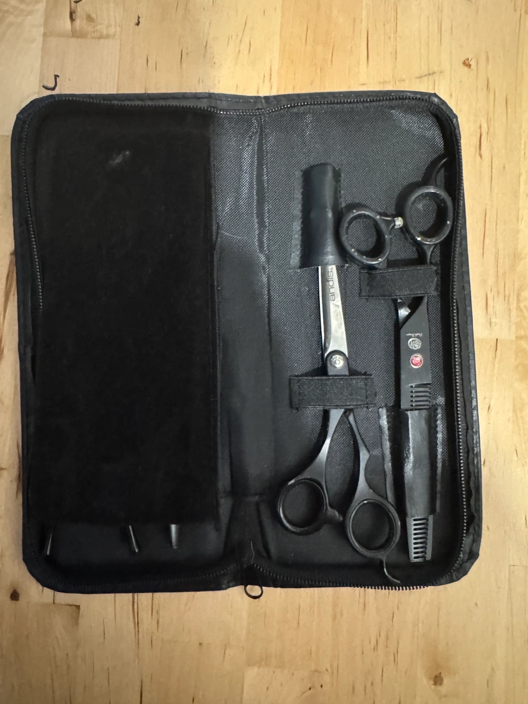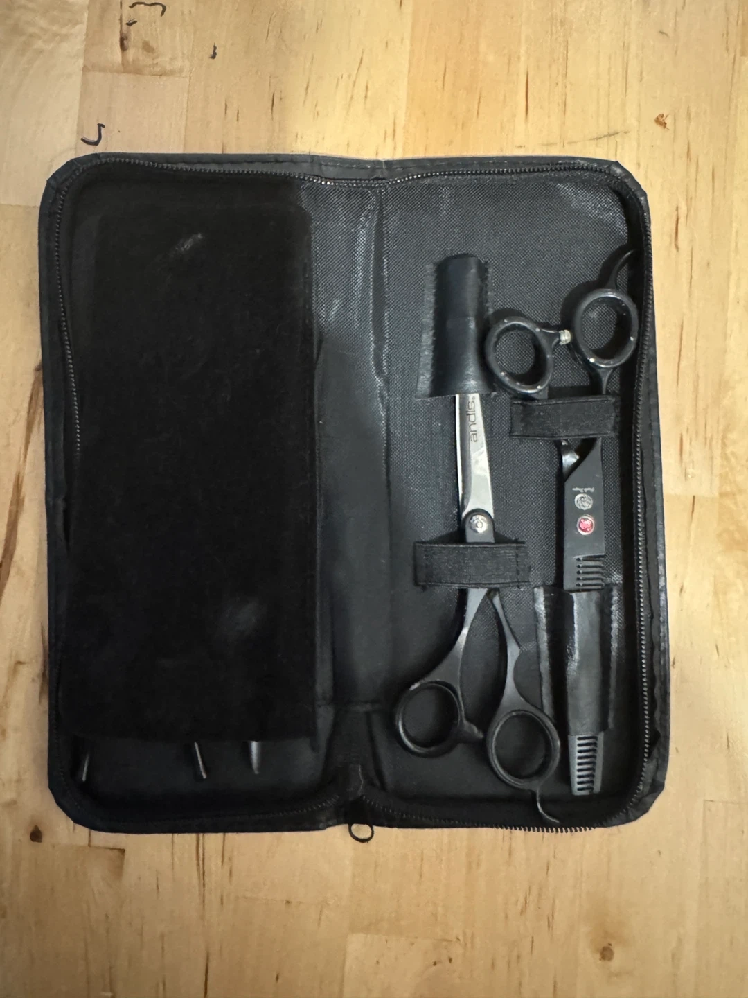 Selling a set of Andis professional barber shears. They come in a convenient carrying case, perfect for keeping your tools organized and protected. Great for both professional barbers and those who like to cut hair at home
