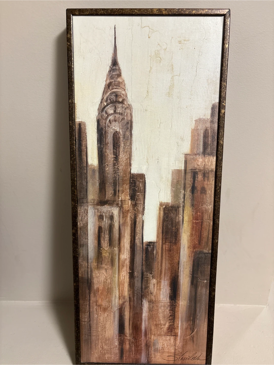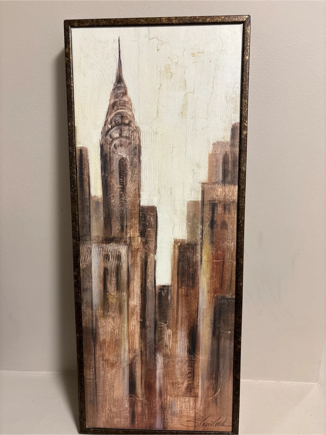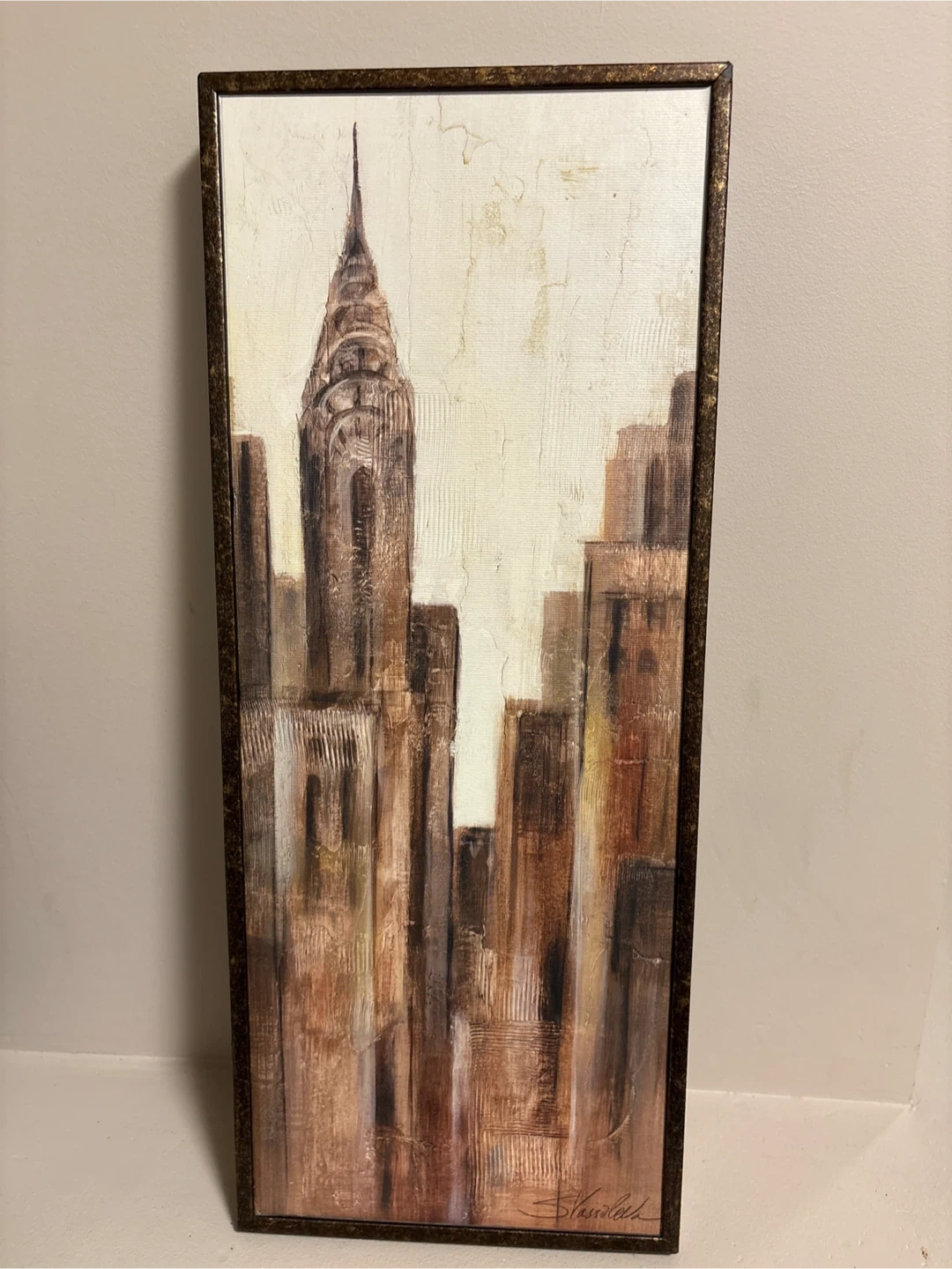 Framed art piece featuring a cityscape. The artwork is signed "Vassaleh" in the bottom corner. It's in great shape and ready to hang in your home!