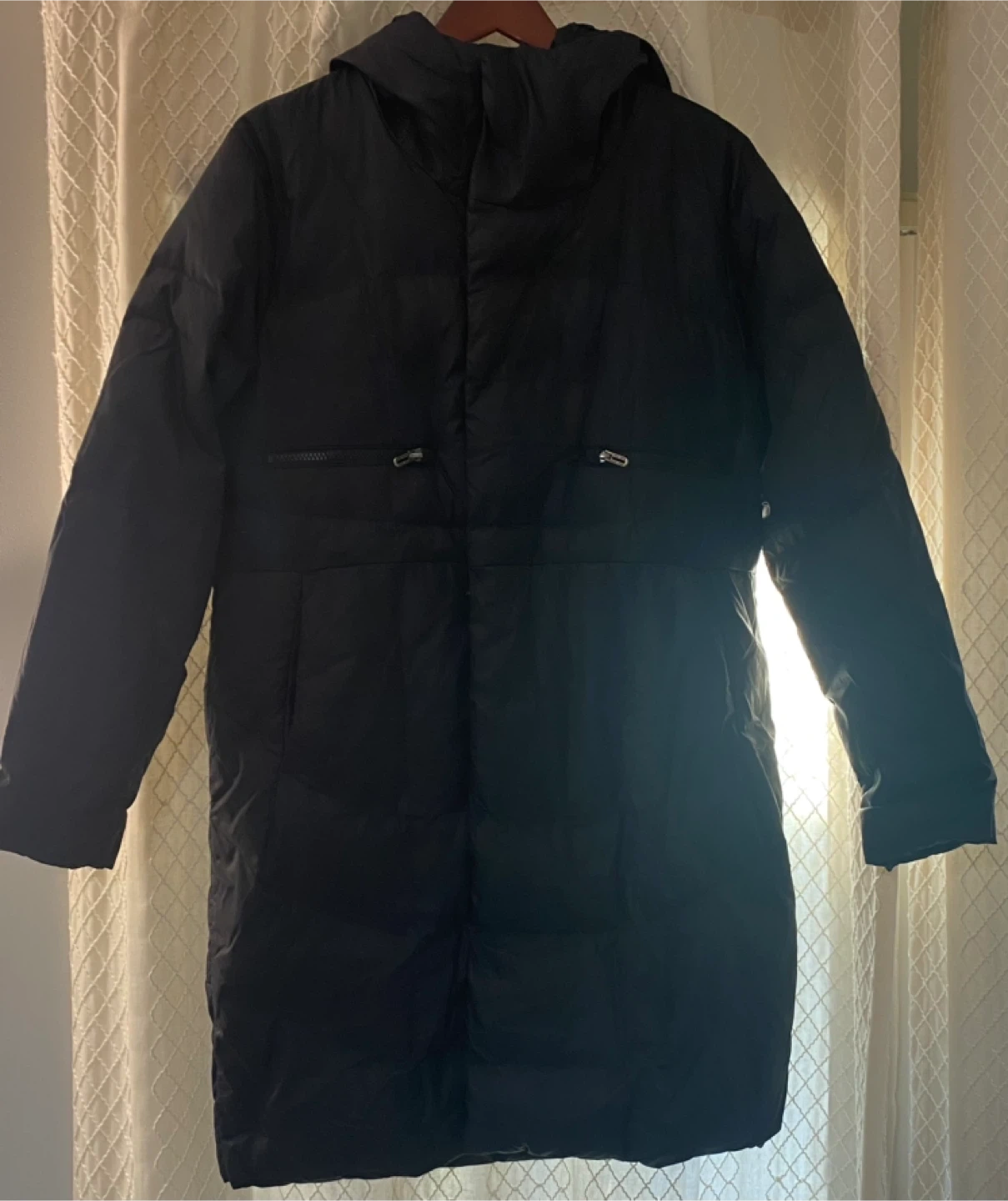 This is a black Under Armour women's down parka. It's perfect for staying warm during the cold Canadian winter! It looks to be in great condition.