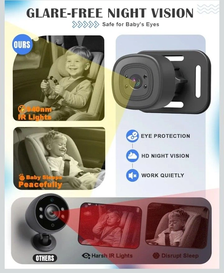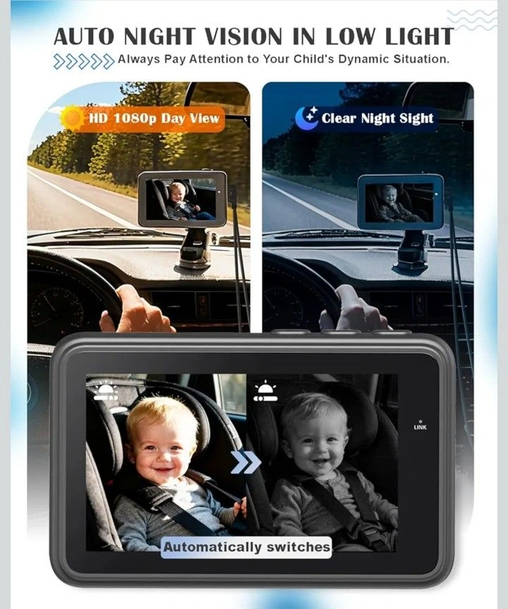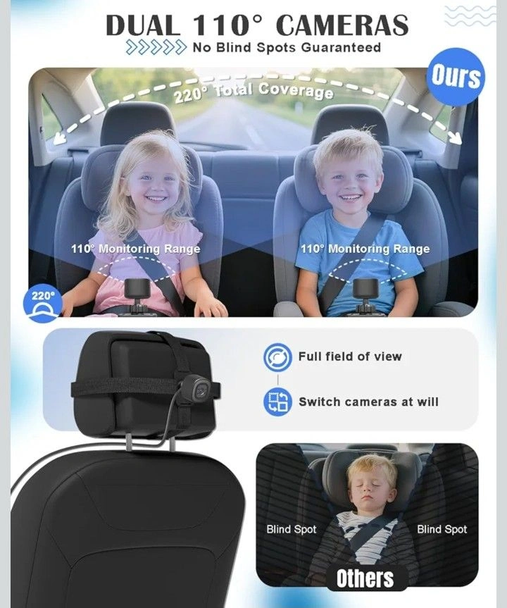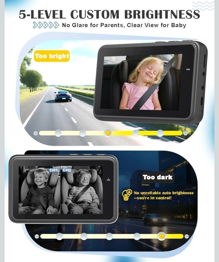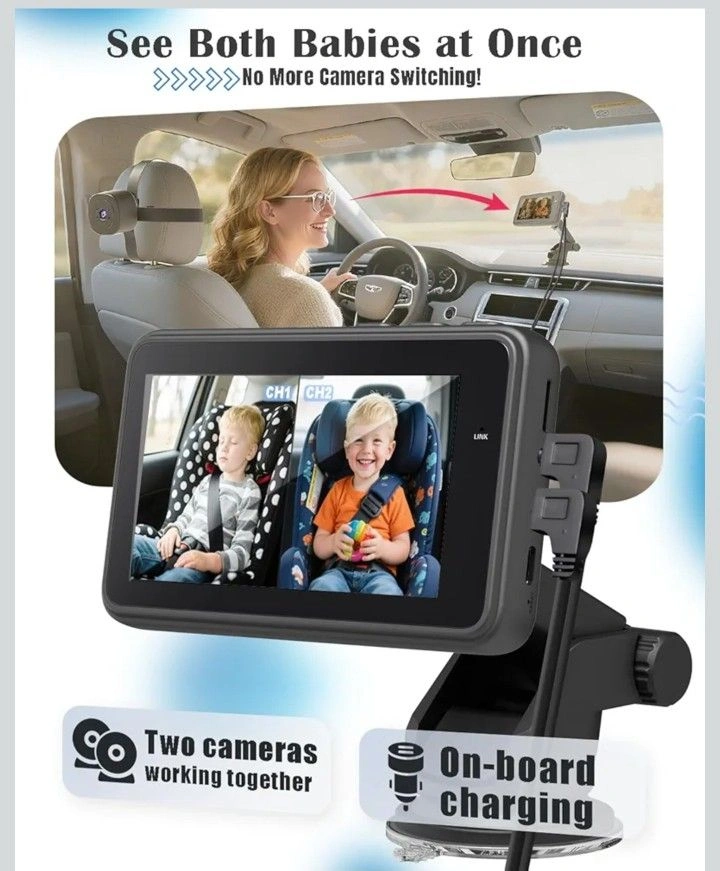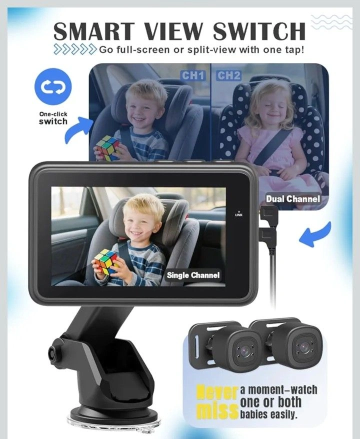 4.3" Dual Channel Car kids Monitor with Split Screen, Night Vision, Wide View, Easy Install Rear Facing Backseat Camera for kids.