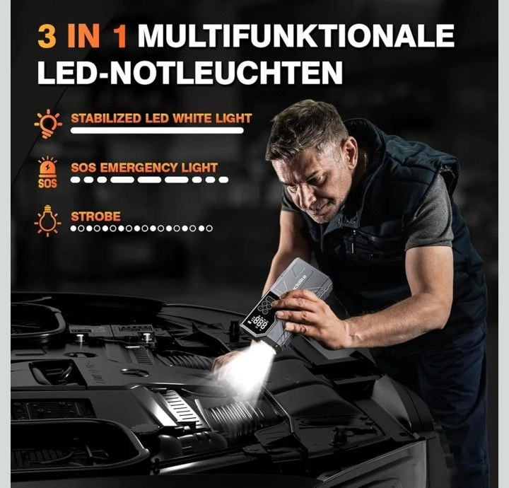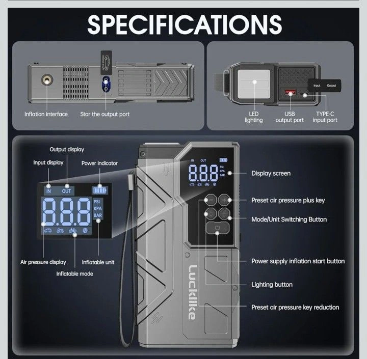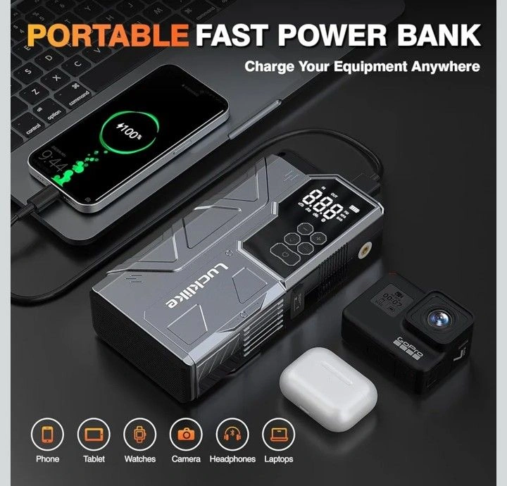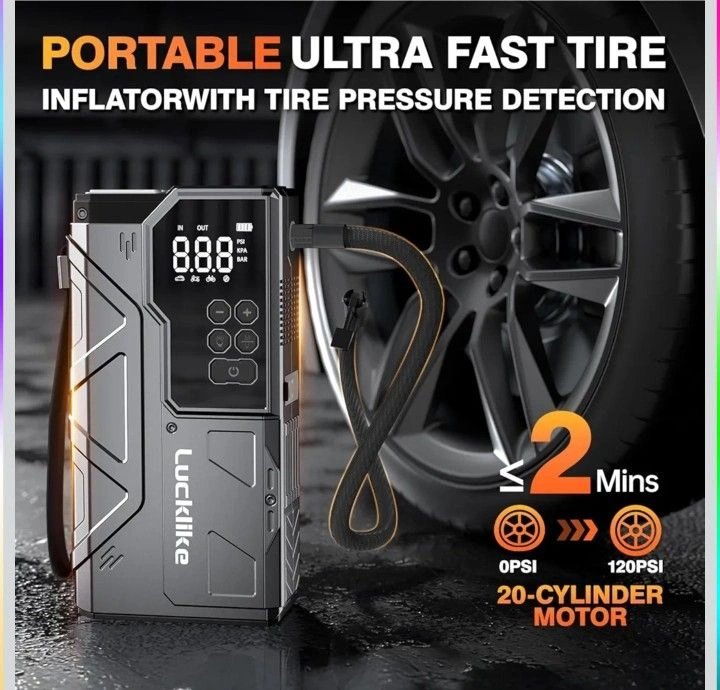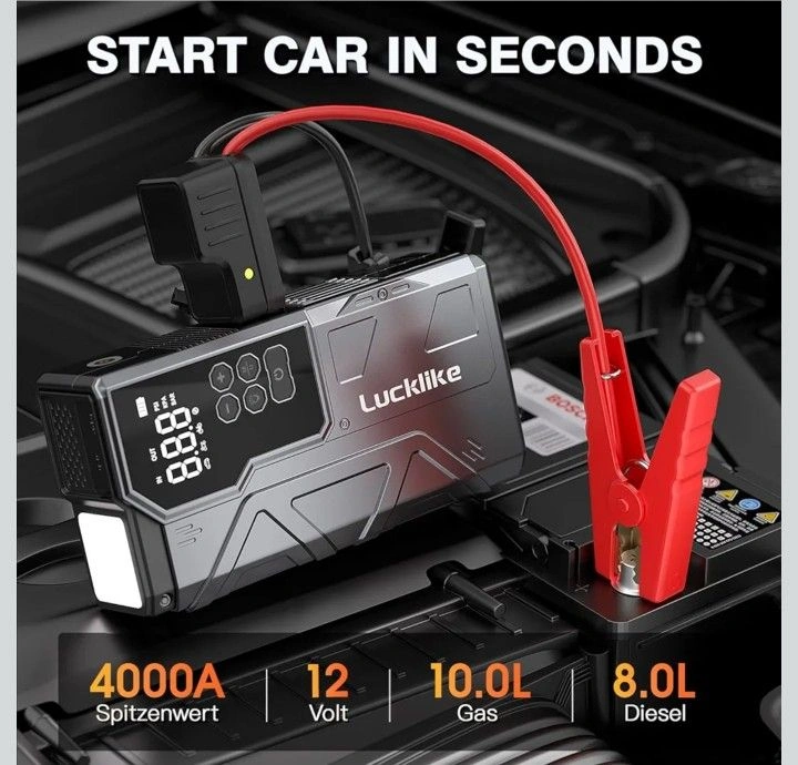Jump Starter with Air Compressor, Lucklike 4000A Portable Car Battery Jumper Starter Pack for 10L Gas and 8L Diesel, Tire Inflator with Pressure Detection, 12V Jump Box with 3 Modes Flashlight