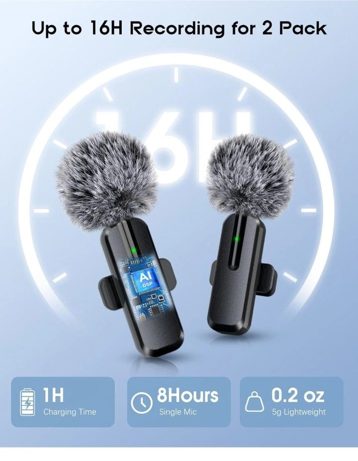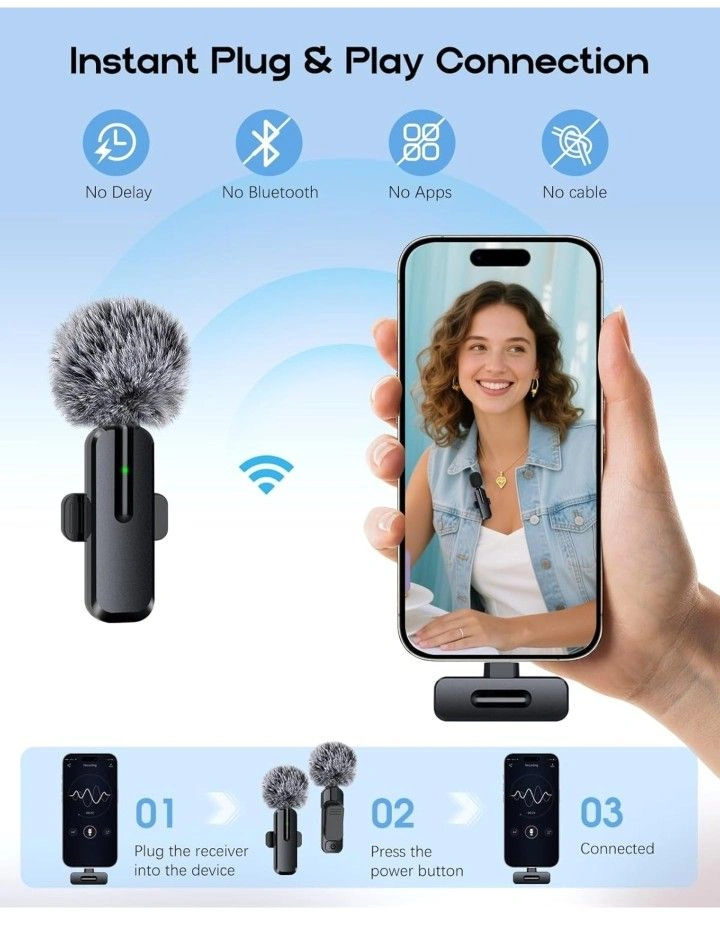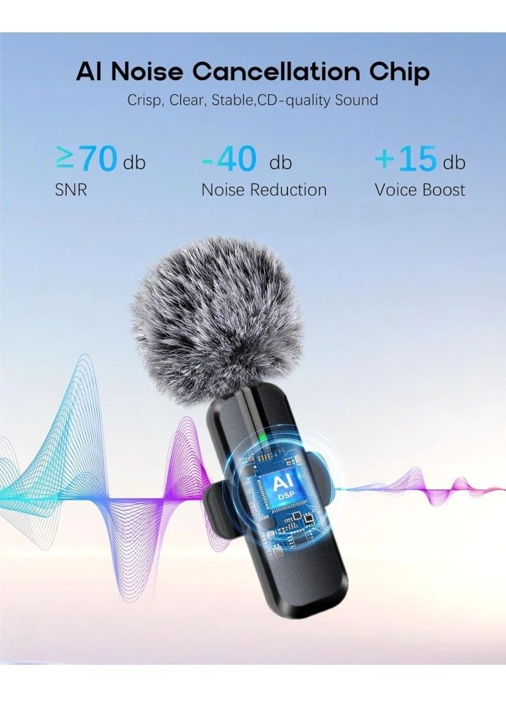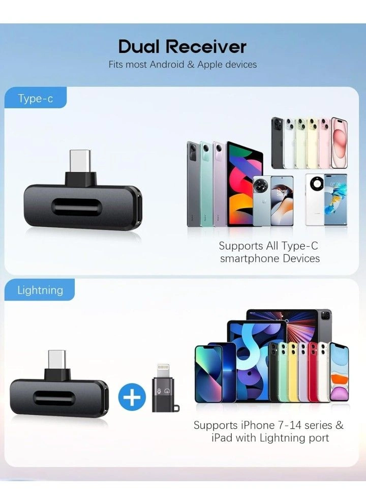 Wireless Mini Microphone for iPhone - 2 Pack Lavalier bluetooth Microphone for Video Recording, 2 In 1 Noise Reduction Lapel Mic for Ipad, Android, Clip-on Mini Mic for Tiktok Youtube Vlog Podcast