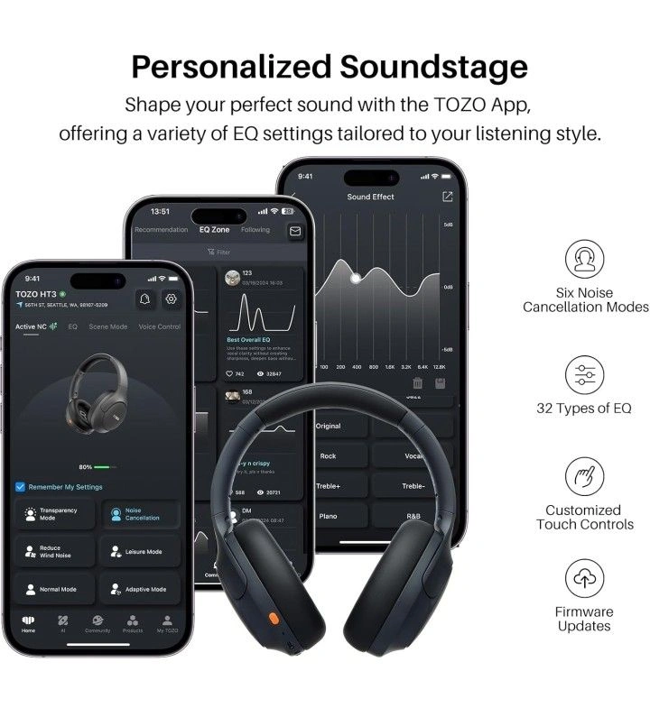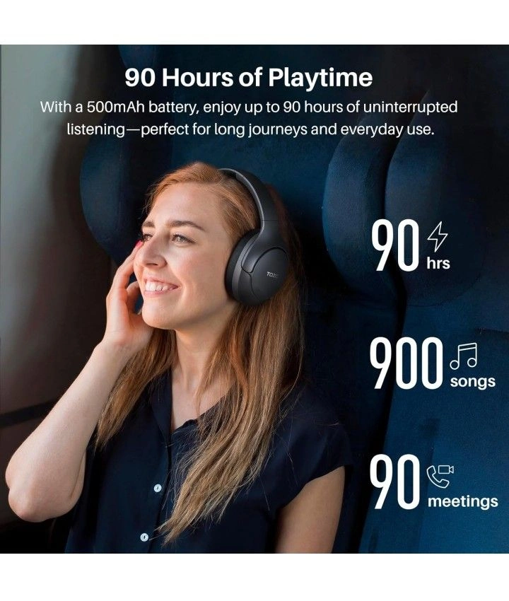 90H Playtime Wireless Over Ear Bluetooth Headset, Spatial Audio AI Chat with 5 Mics, Supports Dual Connection and USB-C Input, with 32 EQ Music Modes