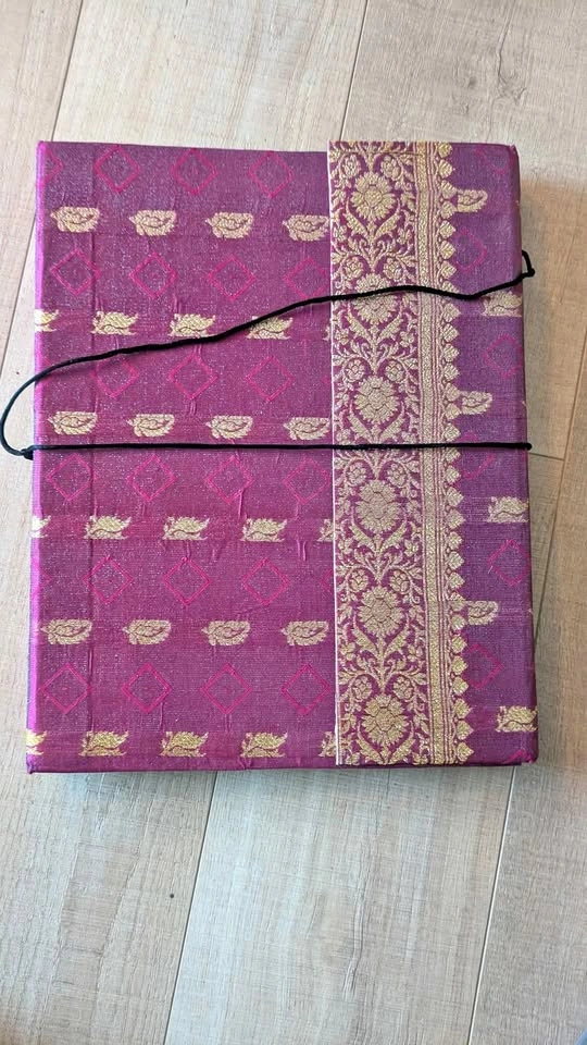 Beautifully designed fabric covered scrapbook. Only the first page has the word "Family" drawn on it. Otherwise new, with tissue separating each page. Measures 13" Γ 10".
