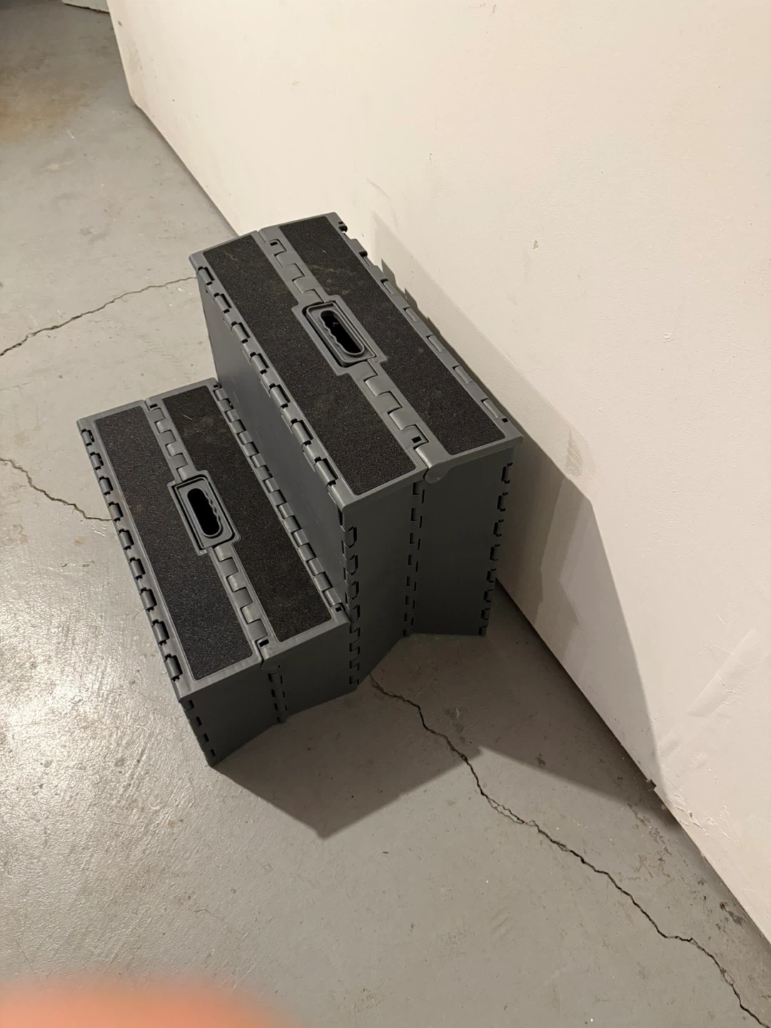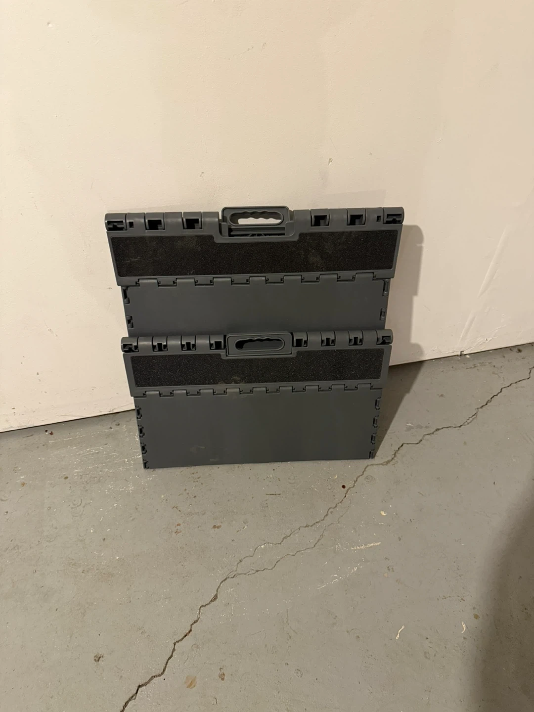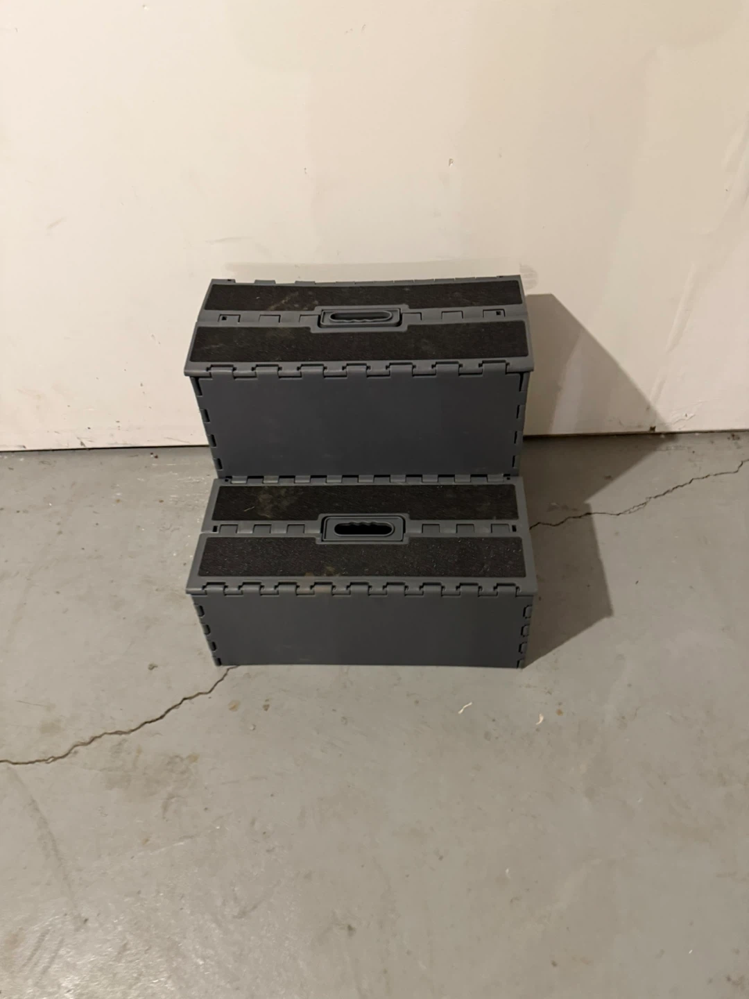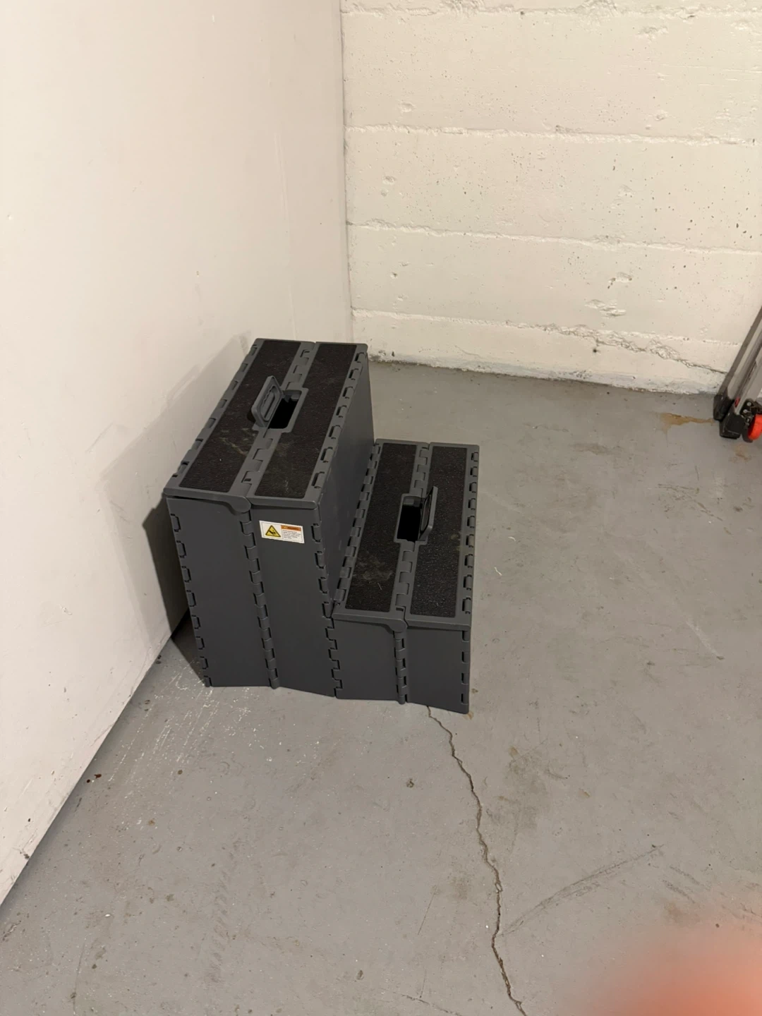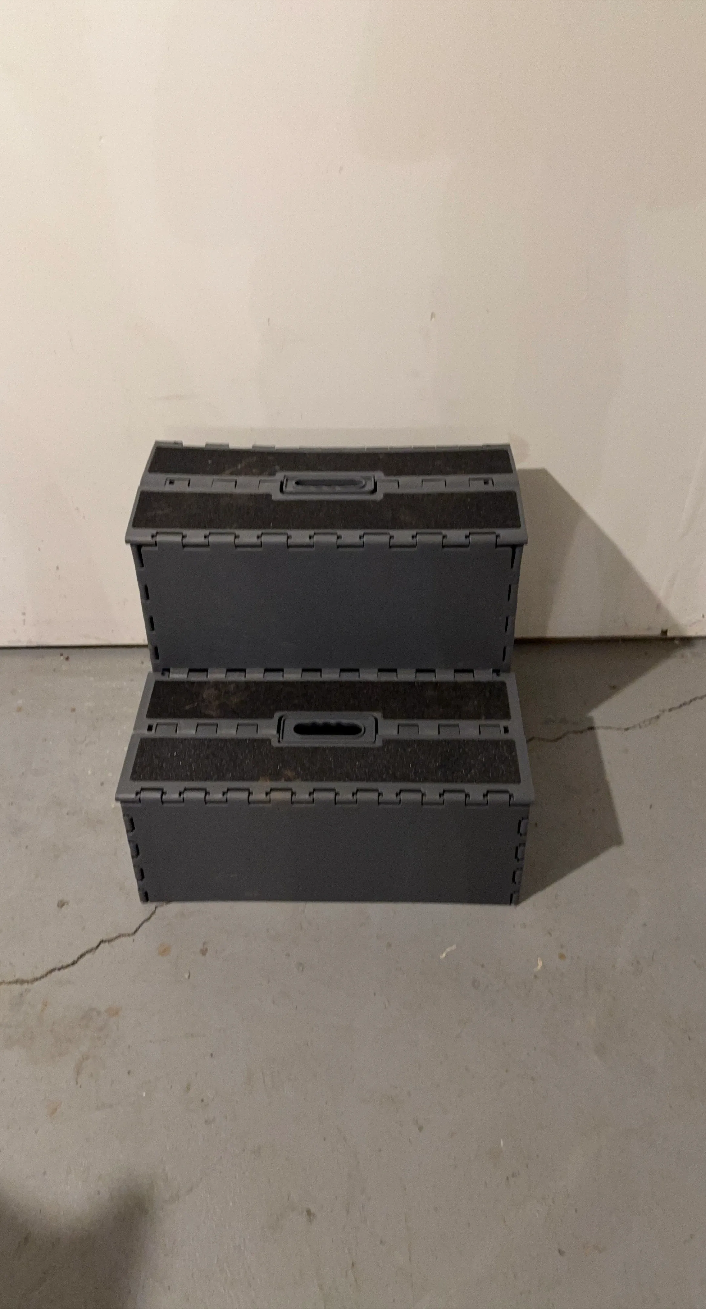 Selling a gray folding step stool. It's perfect for reaching high places or for kids to use. It folds up easily for storage, making it super convenient!