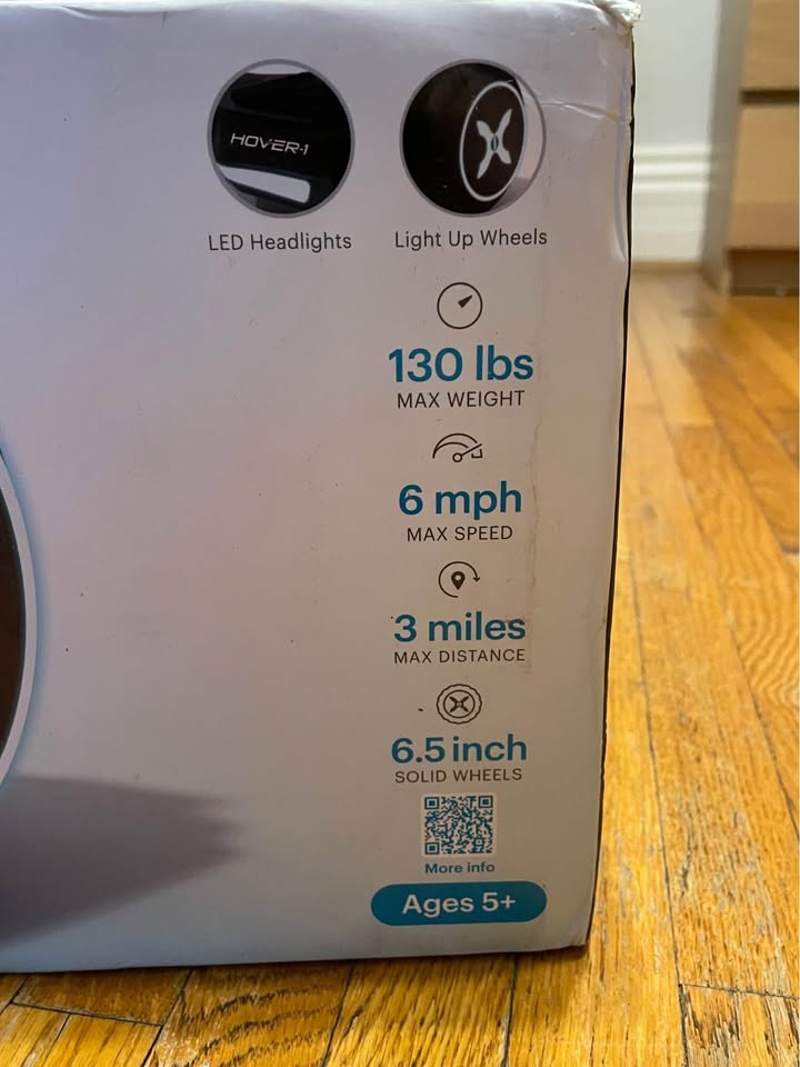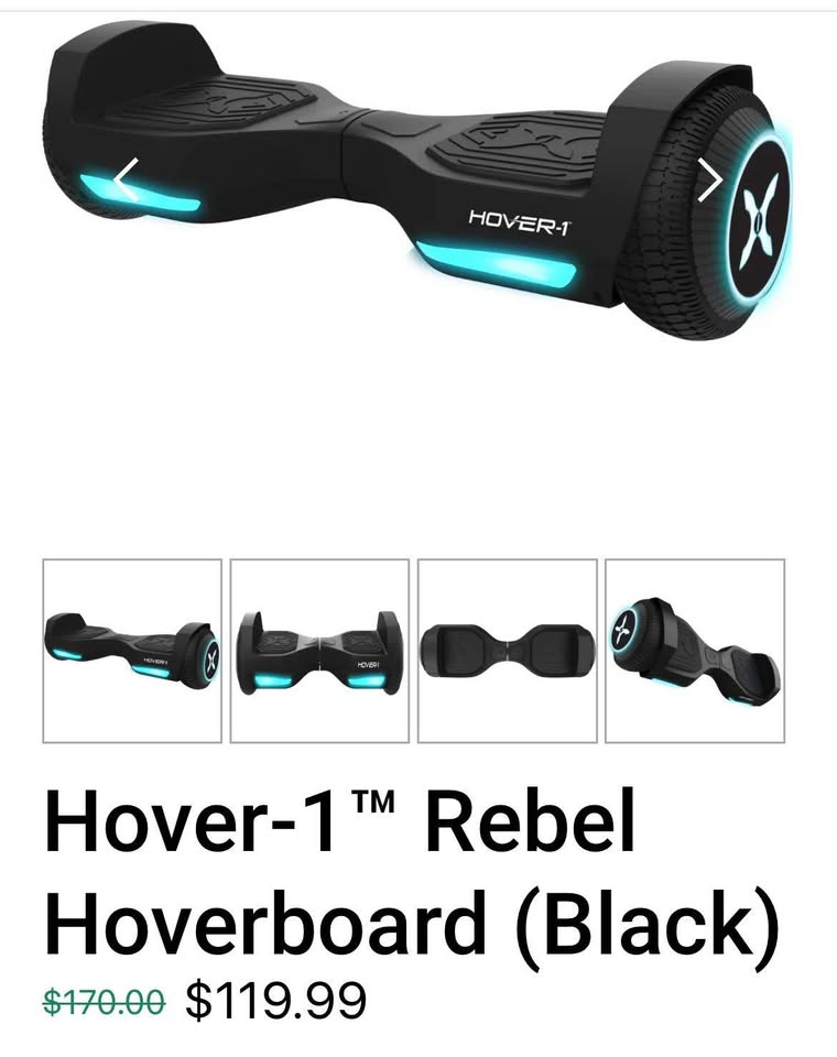 New in box, never used. Hover-1™ Rebel Hoverboard features sleek black design, this combining style and function for an unforgettable ride. Impress your friends as you effortlessly glide through the streets. Experience the thrill of hovering with the Hover-1™ Rebel Hoverboard.