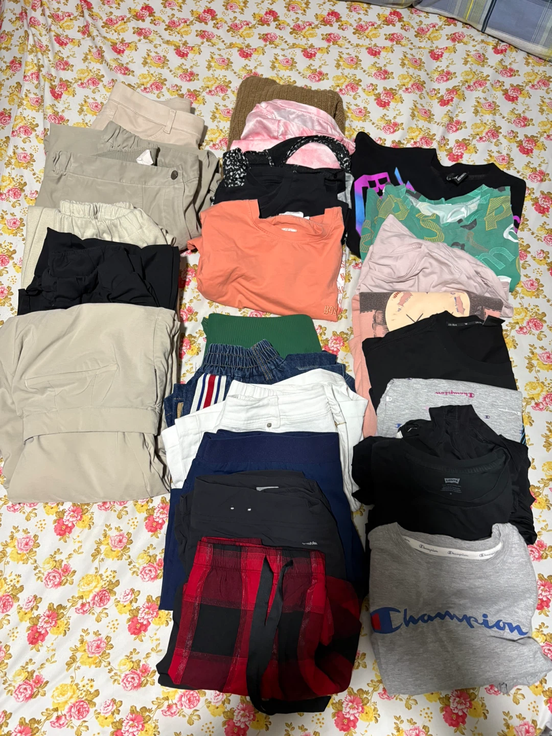 From UNIQLO, Lululemon, Championship, Puma, MLB, Oak + Fort + 5 unbranded clothing from Vietnam.