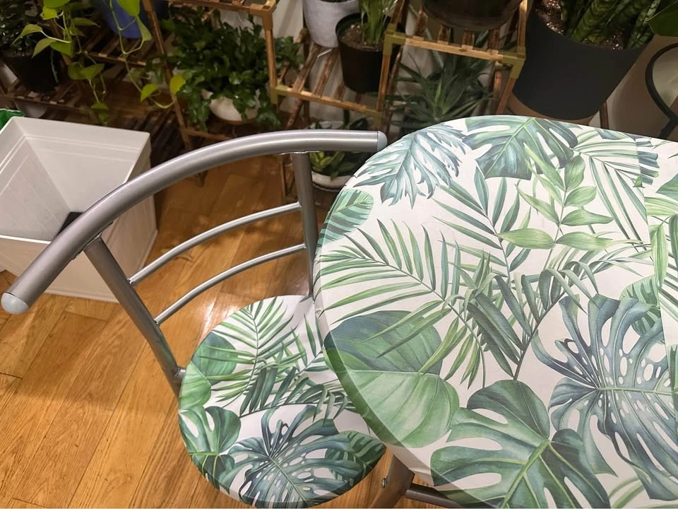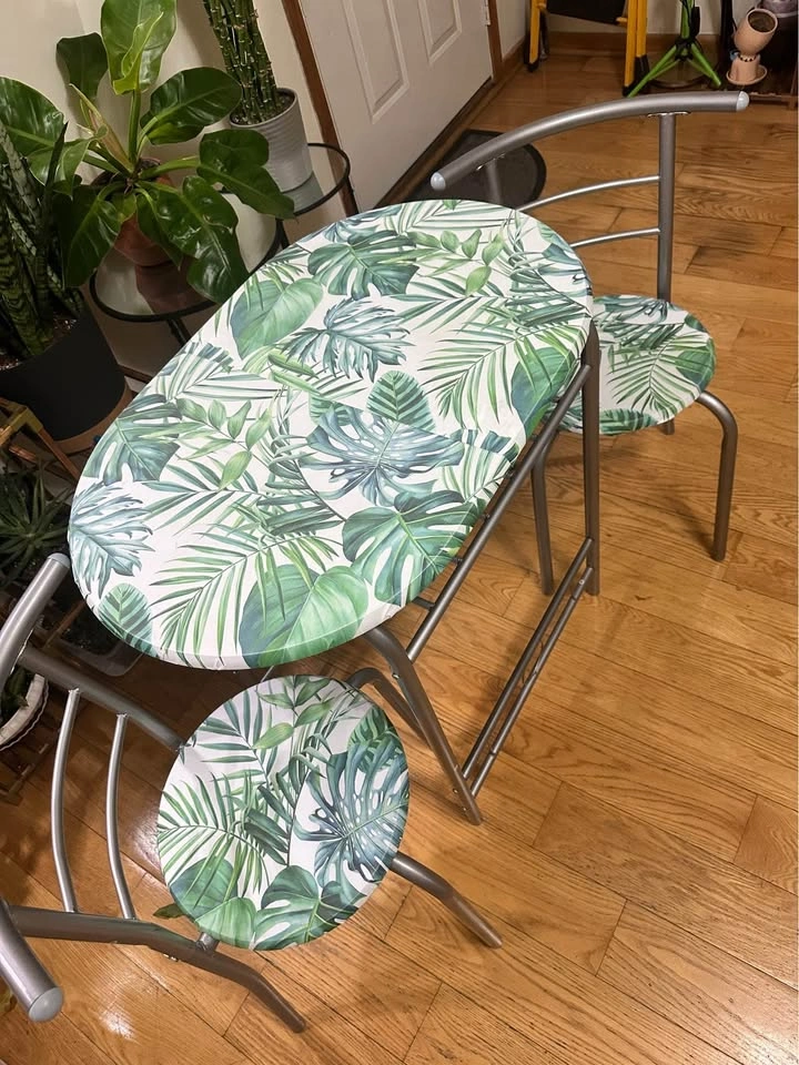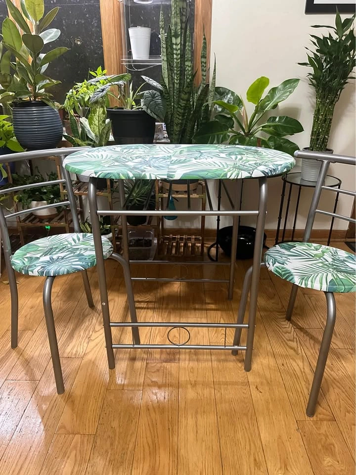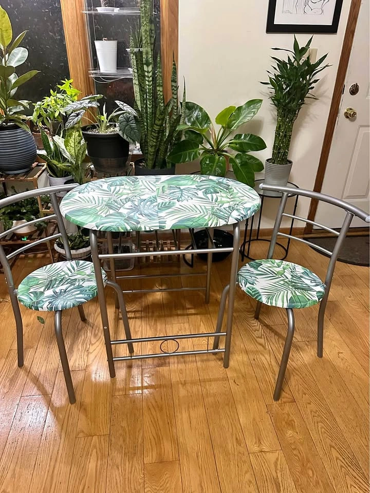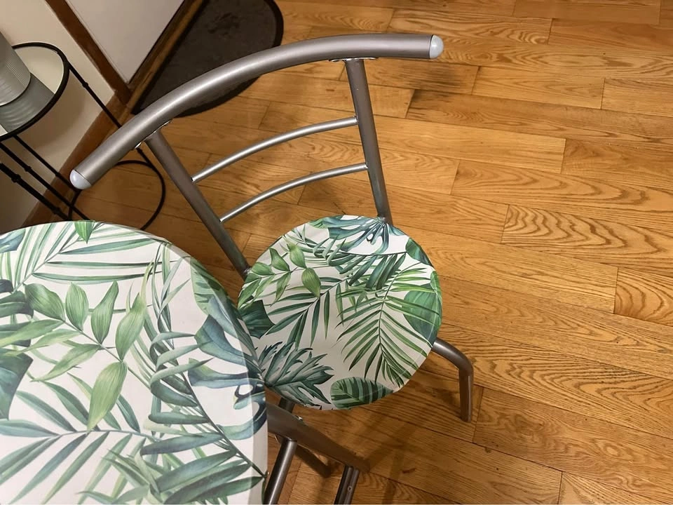 Small oval shaped table with 2 round chairs. I didn’t like the color so i had added contact paper in the leaf pattern, it can be removed or changed to another pattern of your liking. Pickup by 2210 w Pershing Rd (McKinley Park)