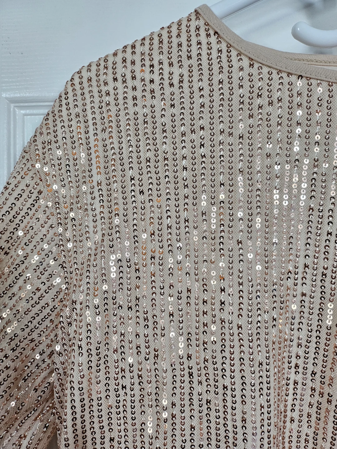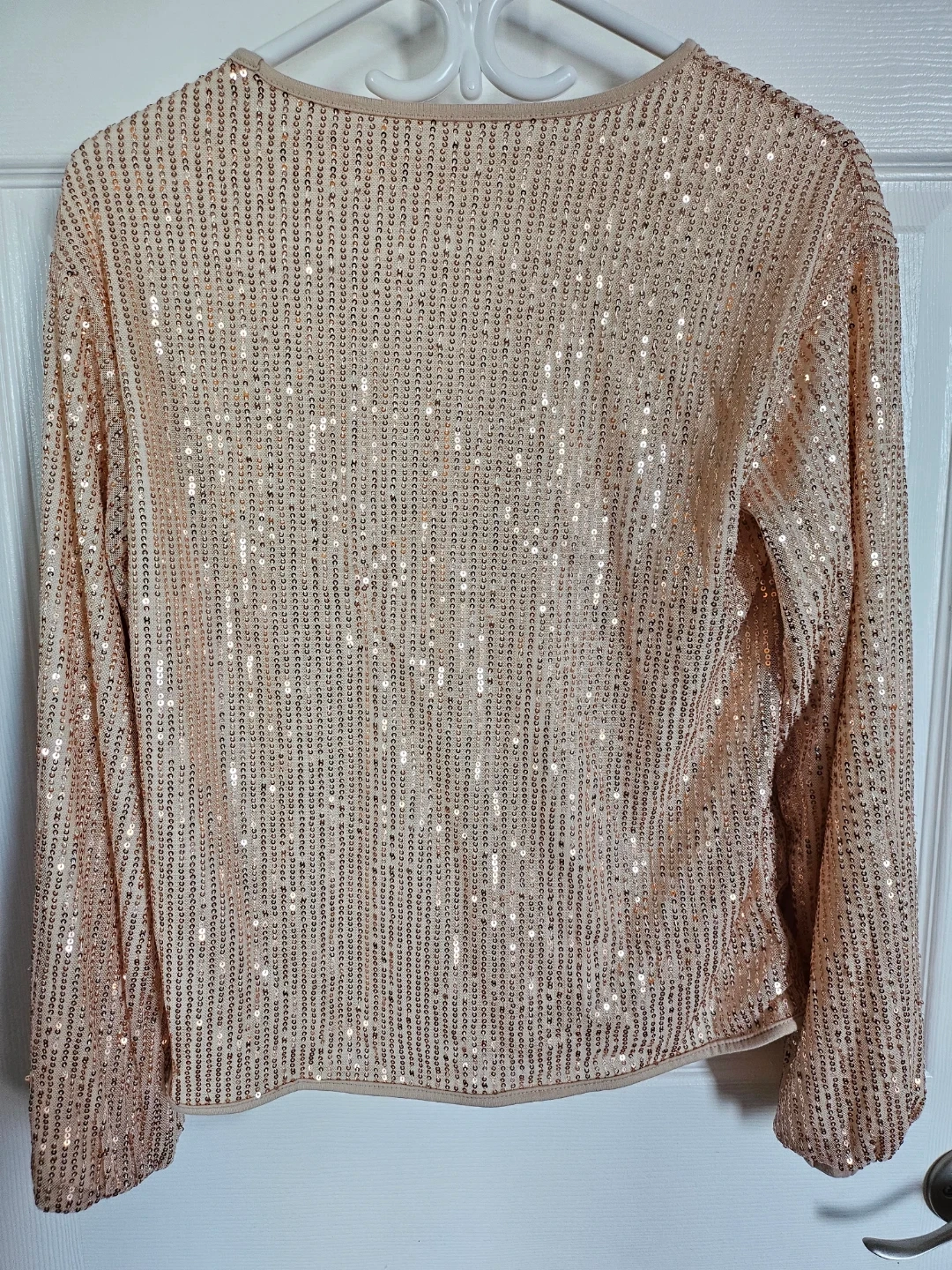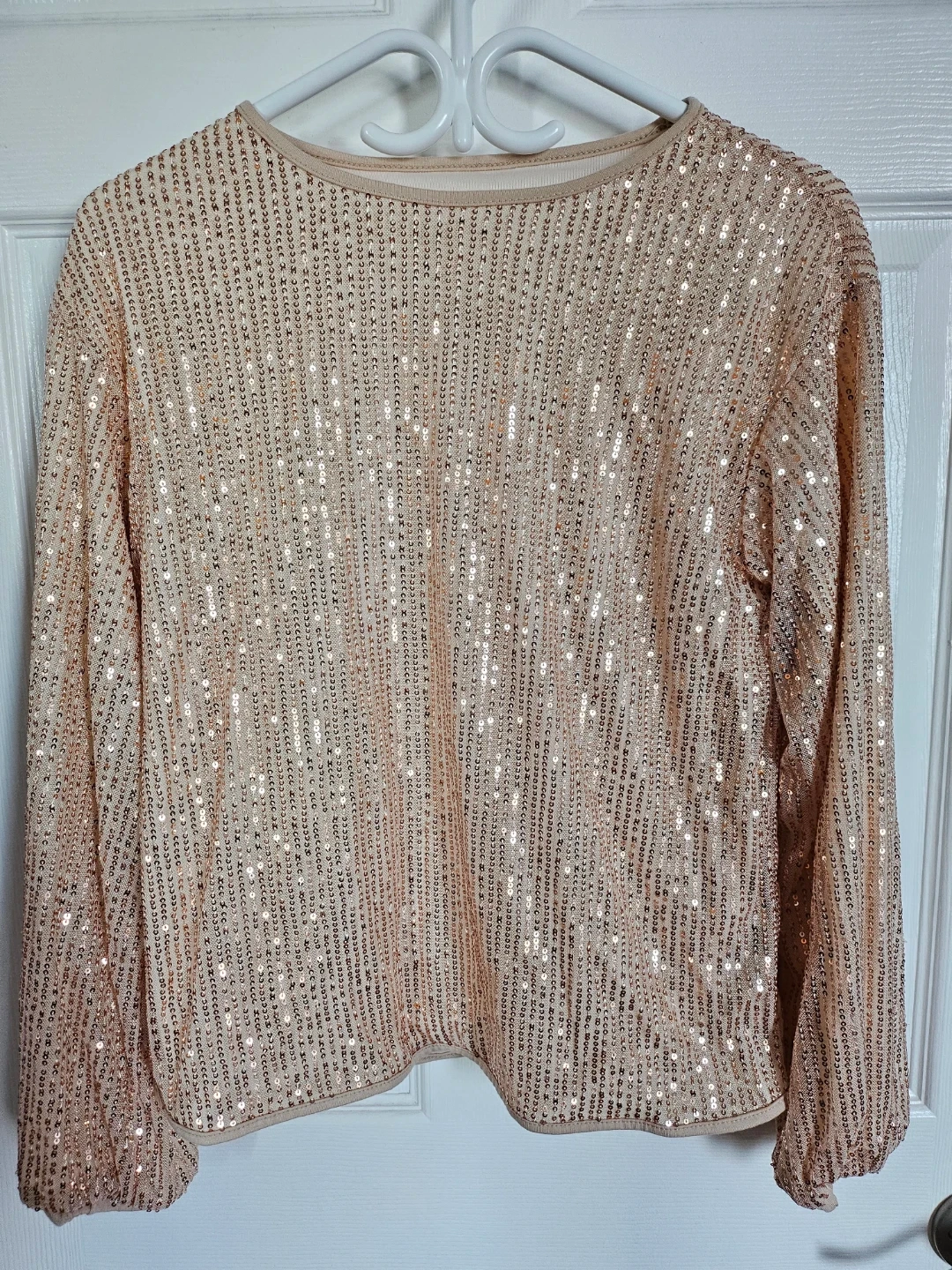 Selling a sparkly gold sequin long sleeve top! It's in great condition and perfect for adding a bit of glam to any outfit. The sequins catch the light beautifully. It is a women's size small.