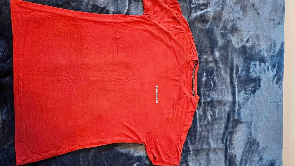 Worn them once each, mens size Small. Also have the red one in a long sleeve, same size. They fit nice, good soft material, the stitching they put around the shoulders give you a good range of motion when lifting and contours to the shape of the muscle to make them stand out more. $20 each for the shirt, $30 for the long sleeve. Pick up in Maple Ridge or Langley.