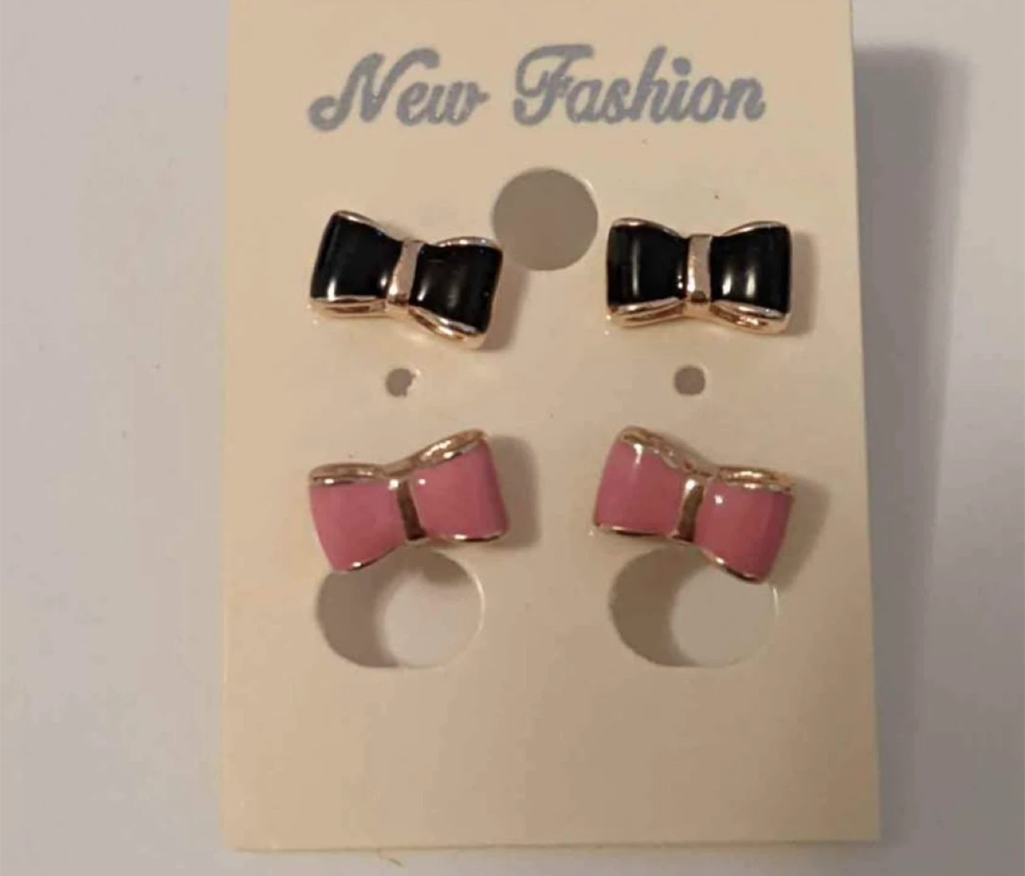 Cute bow earrings! Two pairs included, one in pink and one in black. Perfect for adding a touch of sweetness to any outfit