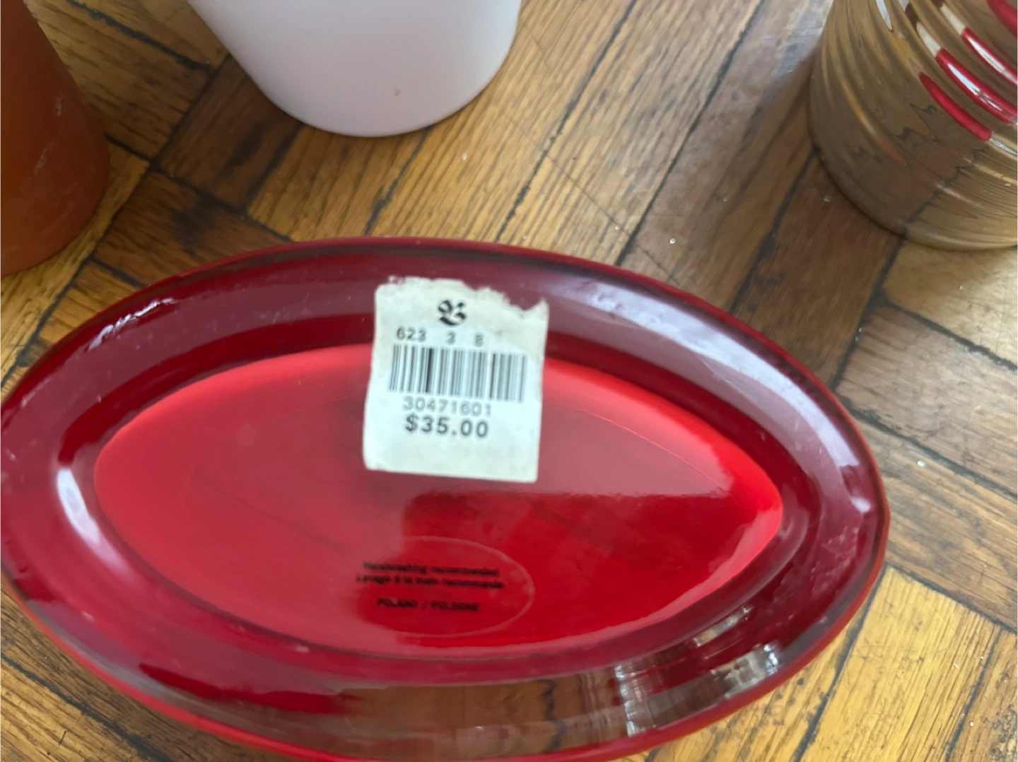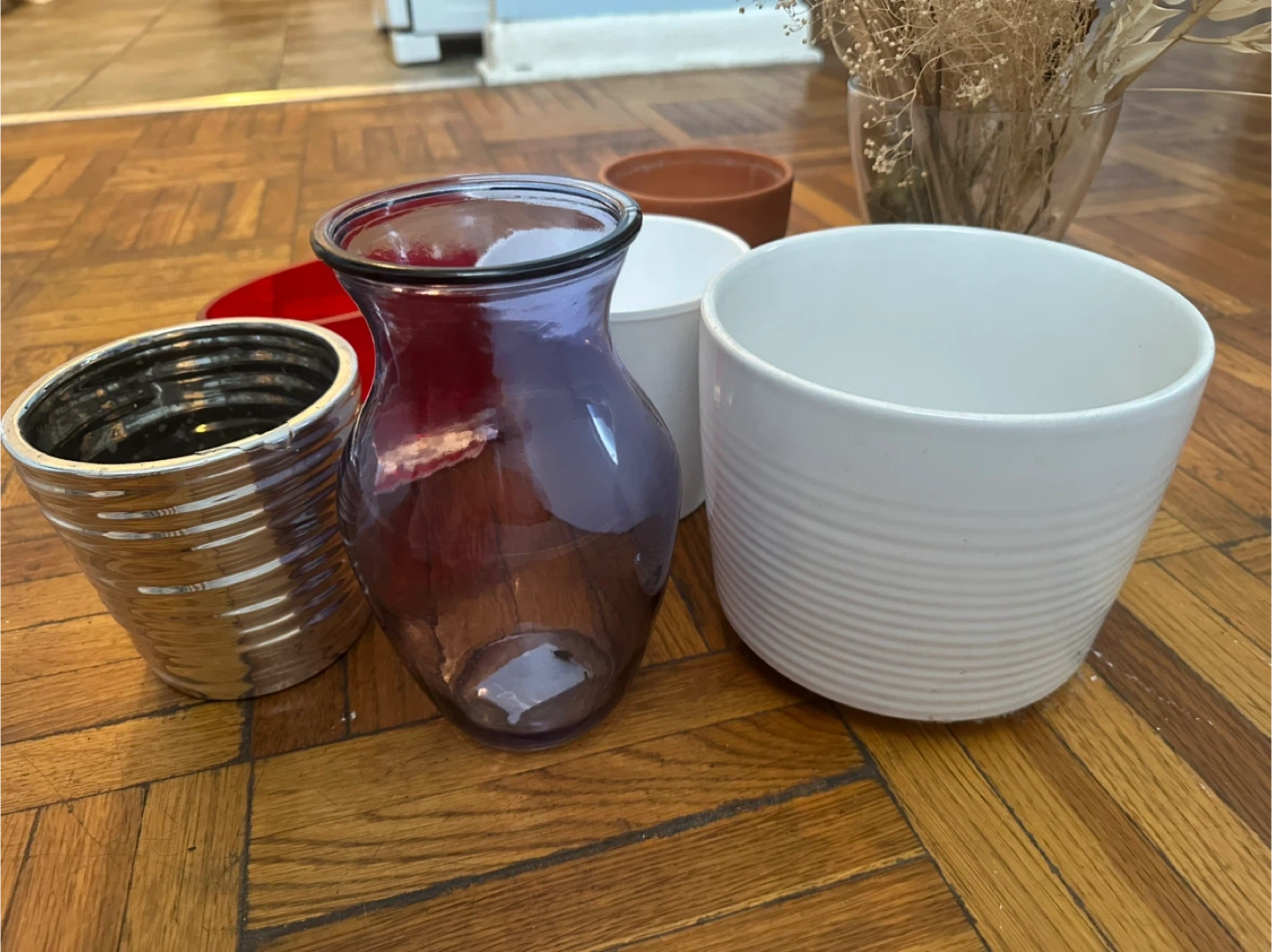 Red vase a little chipped but hard to see.