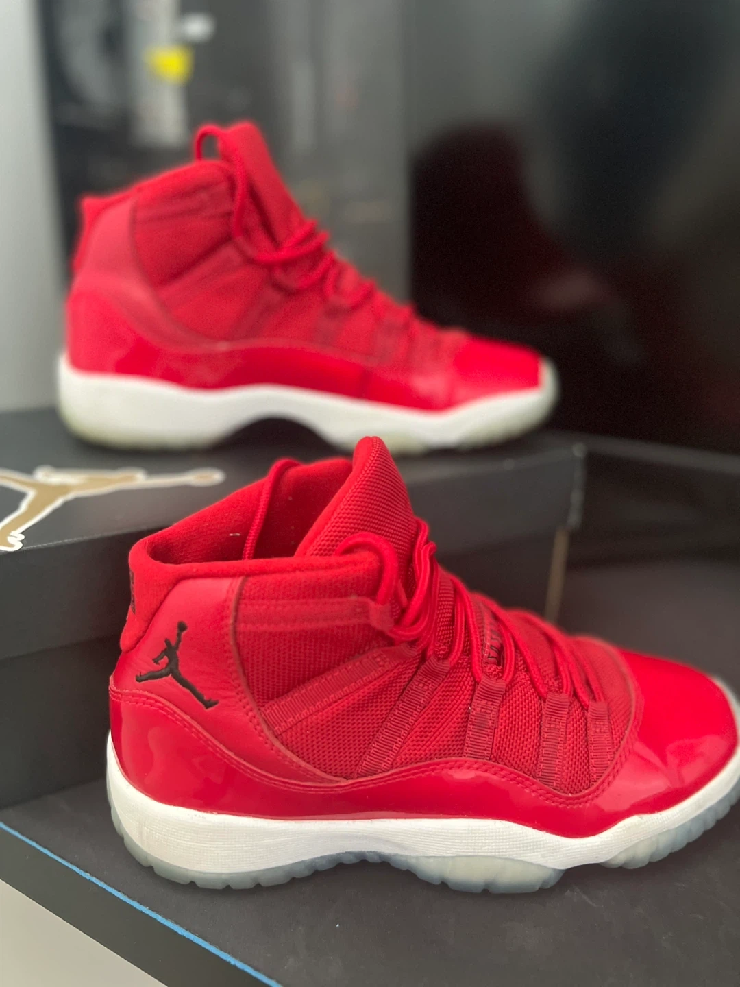 Selling a pair of Air Jordan 11 Retro 'Win Like 96' in a vibrant red colour! These are a youth size 5.5. They come with the original box and packaging, perfect for any young sneakerhead!