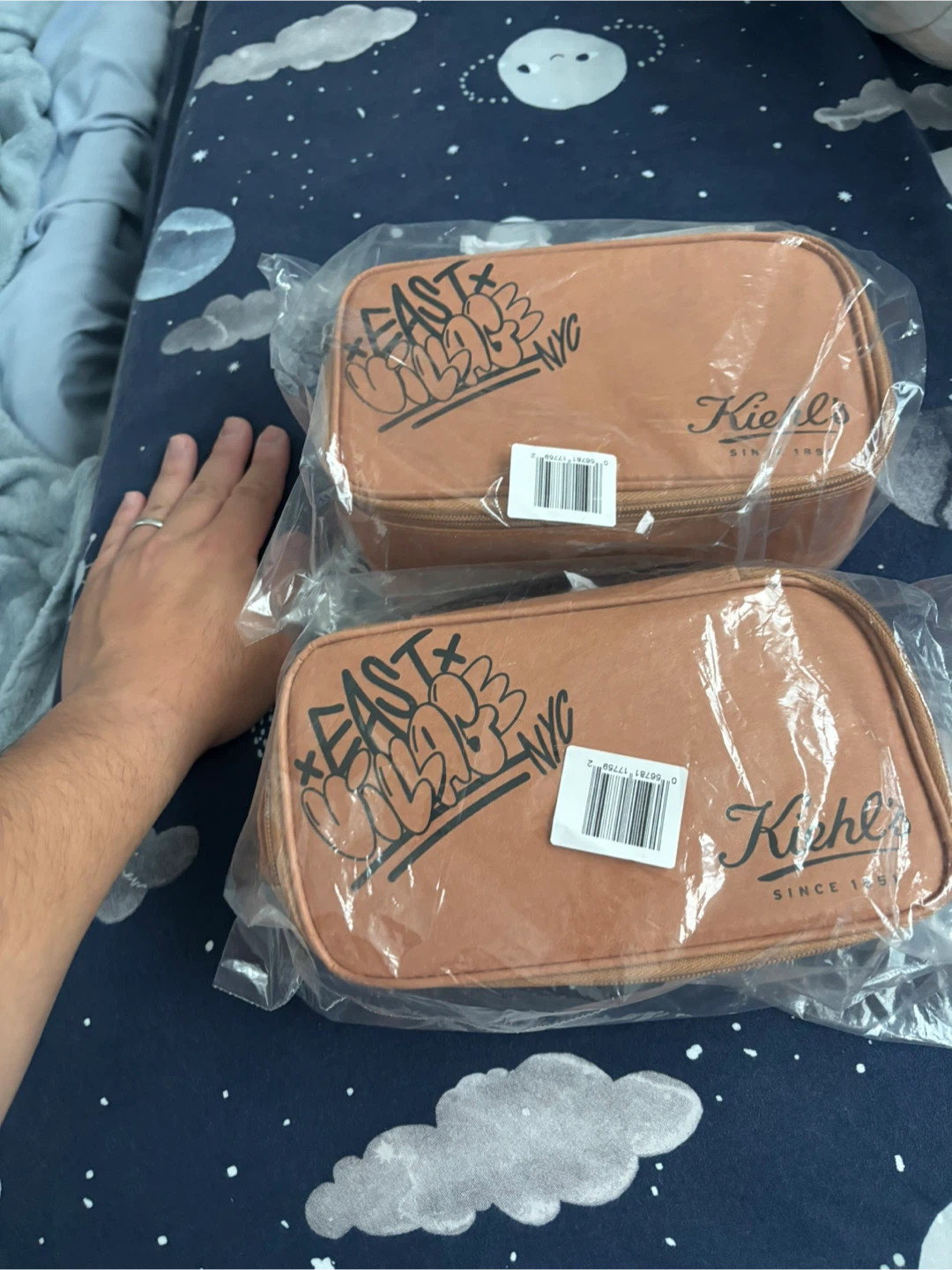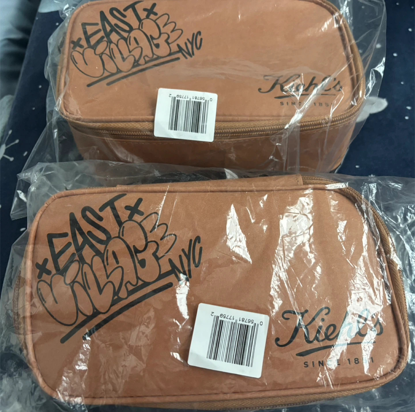 I have a set of two brand new Kiehl's pouches, still in their original packaging! They feature a unique East Village NYC design. Perfect for storing your skincare or makeup on the go