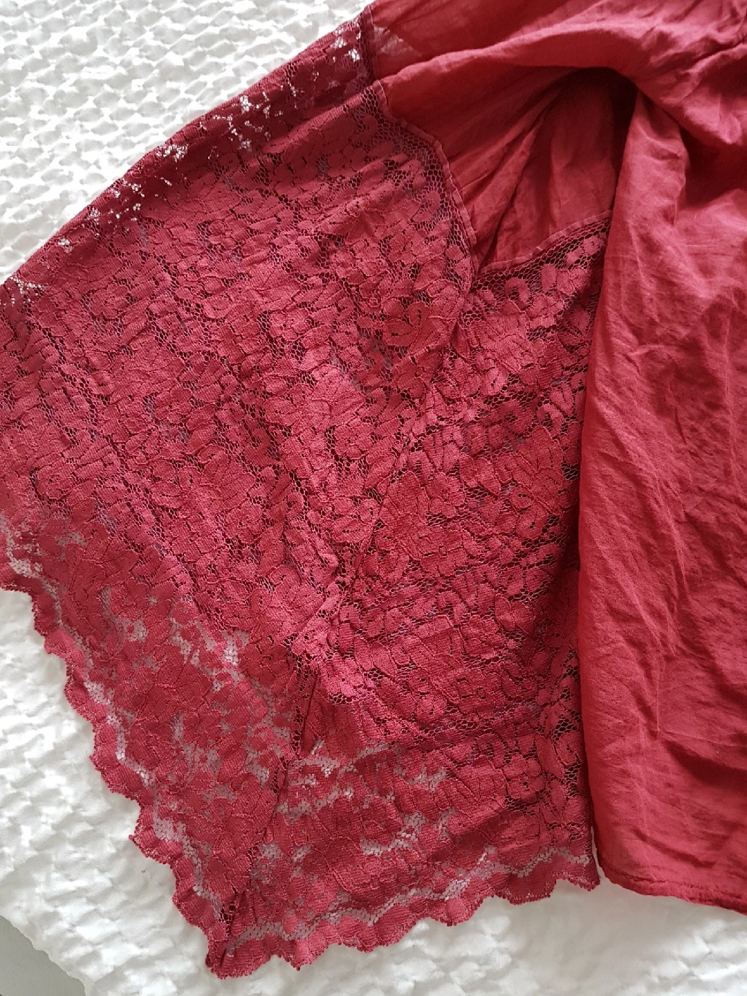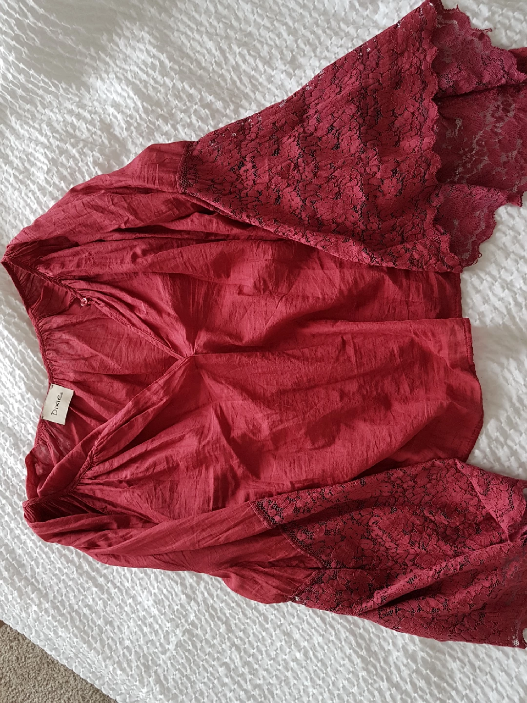 Selling a cute red blouse from Dixie! It features lovely lace detailing on the sleeves. Perfect for adding a pop of colour to your wardrobe. Please also check out my other listings on this account. This is a no pet/ smoke home. Pick Up Cochrane, Alberta