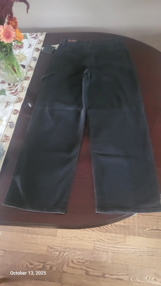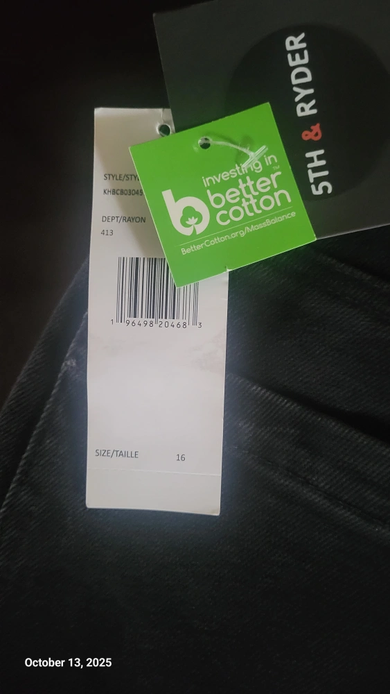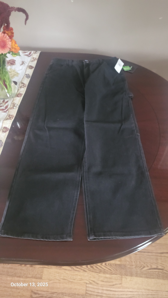 Selling a pair of 5th & Ryder jeans in size 16. They appear are new, with the tags still attached. The jeans are a wide-leg style, 'loose utility' and come in a washed black denim.