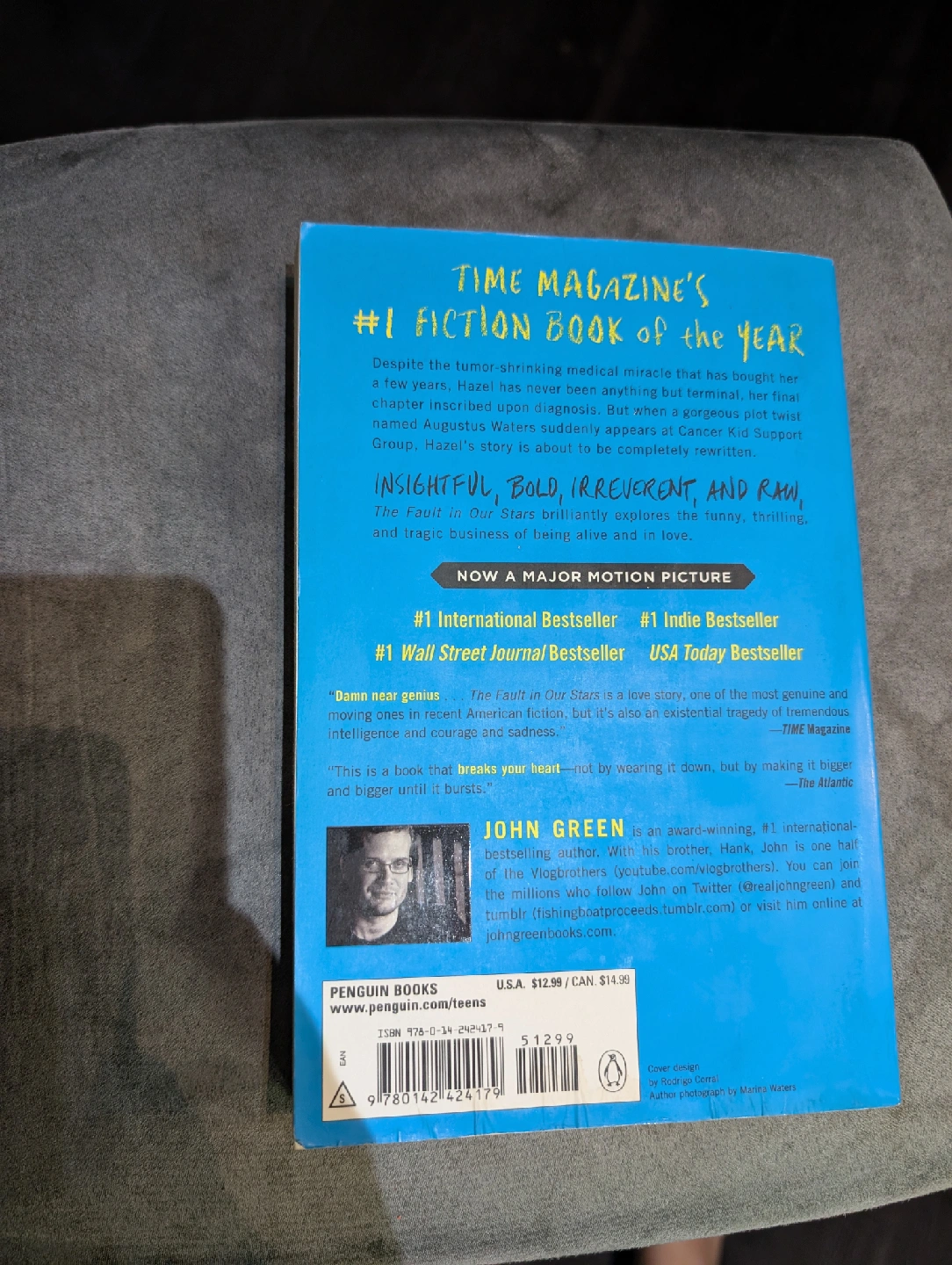 Selling a copy of "The Fault In Our Stars" by John Green! It's a #1 Fiction Book of the Year according to Time Magazine and an International Bestseller. The book is about Hazel's story and is insightful, bold, irreverent, and raw. A great read!