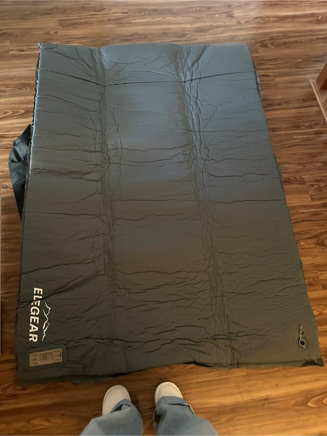 Measuring 78” x 51” x 3.1” inflated, it’s thicker than most camping pads and can hold up to 800 lbs, no air leakage or damage. The included electric pump.
