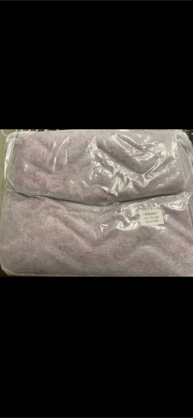 Brand new. Never been opened from it's wrapping It's all wrapped.This bag is made of 100 percent vegan leather and features a removable chain strap, so you can carry it however you please. Burgundy High quality Vegan Leather.