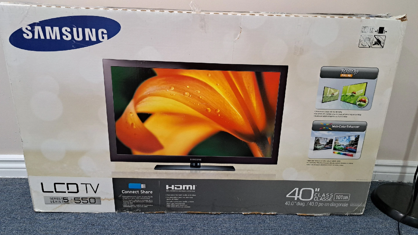 Selling a Samsung LCD TV from the Series 5 550 line! It's a 40-inch class (101cm) TV with 1080p Full HD resolution. Comes with Connect Share, so you can easily enjoy photos and music by connecting a USB drive.