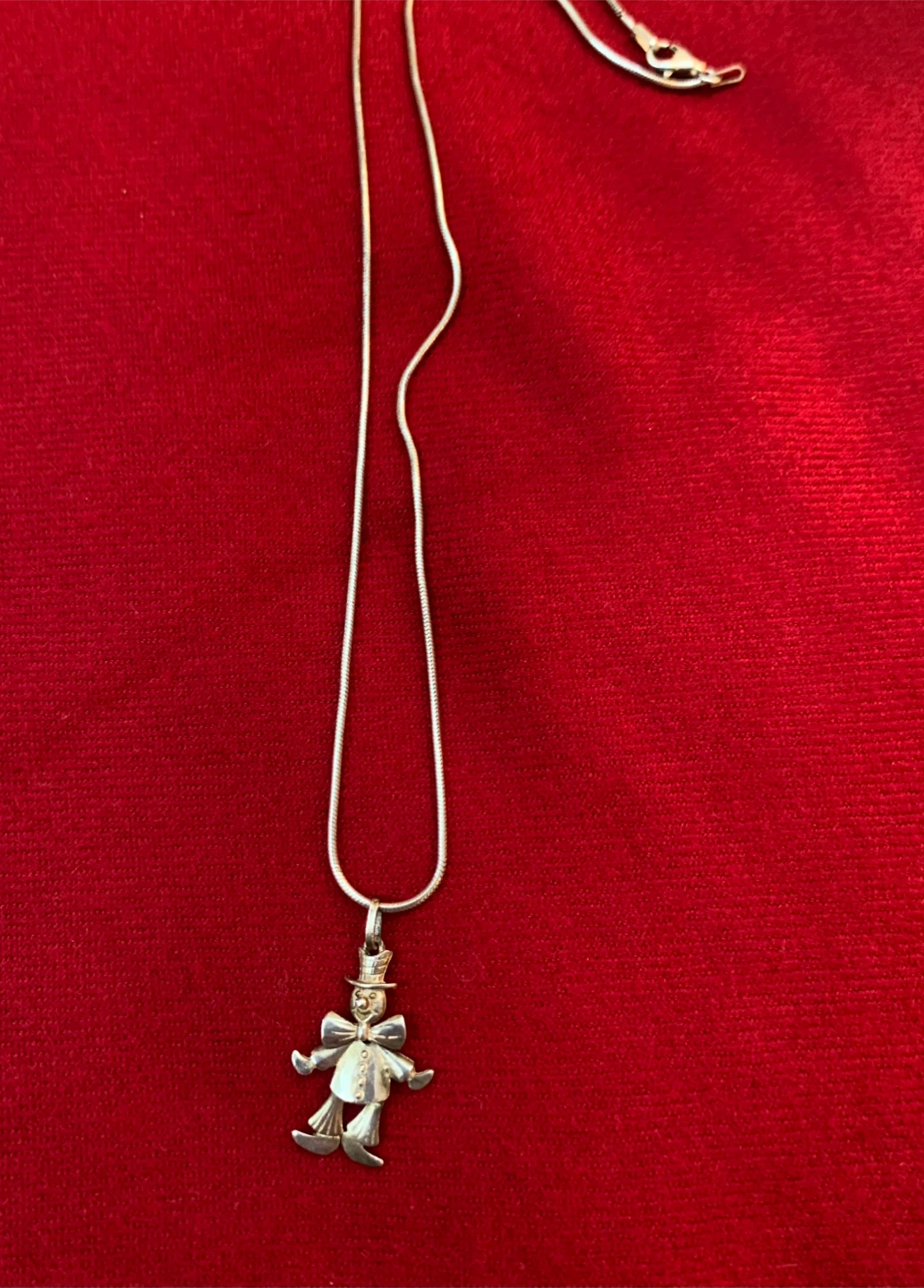 Cute silver (925) vintage clown pendant necklace! The chain is approximately 16 inches long. It has great detail and movable parts. In excellent condition.