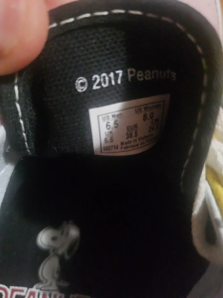 Part of a collaboration with Peanuts, Vans sold a line of their trade mark shoes with the classic Charlie brown stlye.