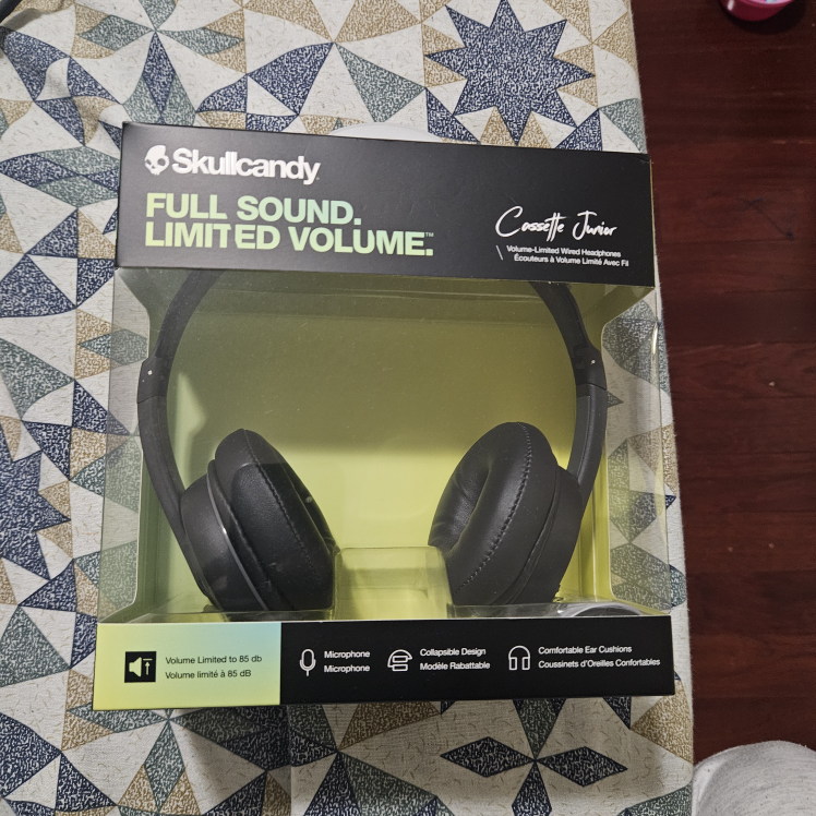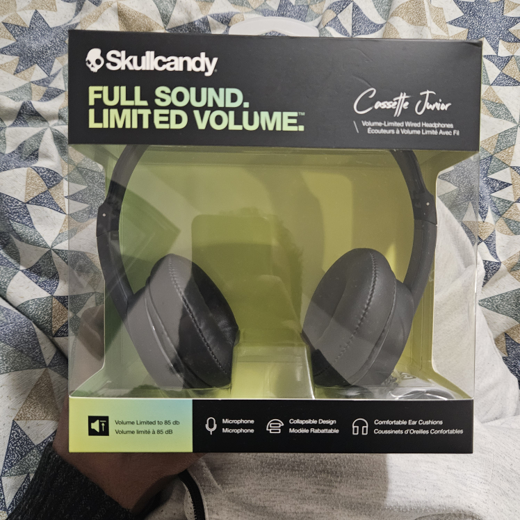 Selling a brand new pair of Skullcandy Cassette Junior headphones! These are volume-limited wired headphones, perfect for kids. They feature a comfortable ear cushion and a foldable design for easy storage. The box is included!