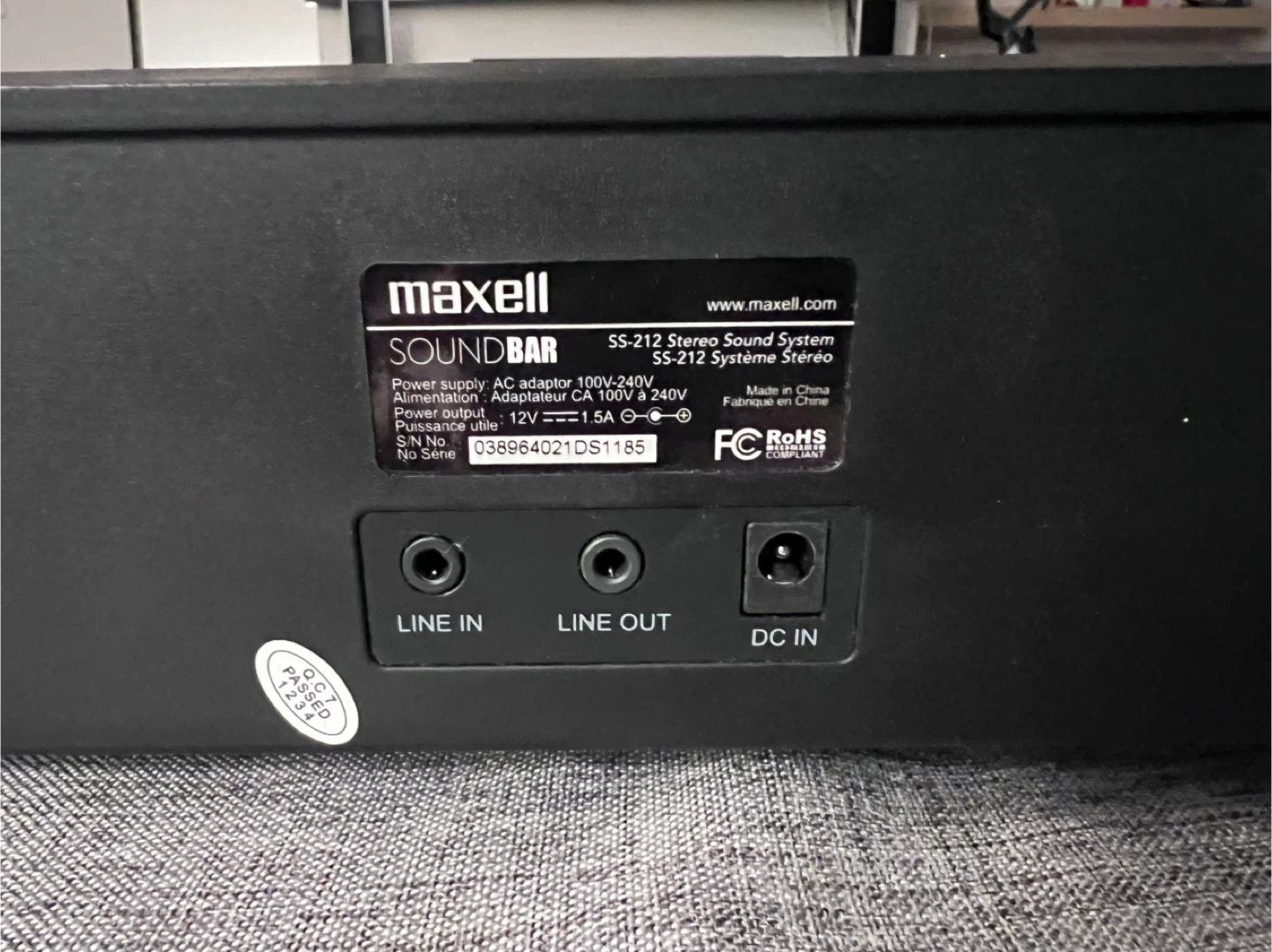 Selling a Maxell SS-212 stereo sound system soundbar. It comes with the AC adapter. It supports 100V-240V. The model number is 038964021DS1185.