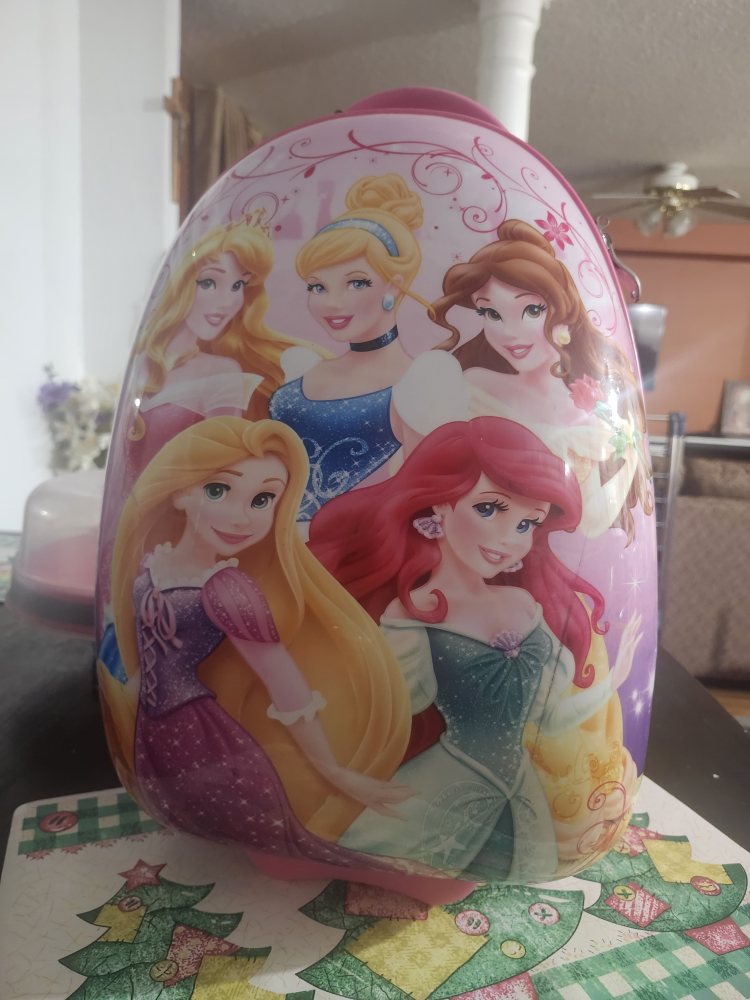 A mixed lot of kids' clothing and character-themed suitcases! There's a red dress and assorted clothing in various colours and styles. Also included are character suitcases featuring Disney princesses, Star Wars, and Cars! Perfect for any little one who loves these characters