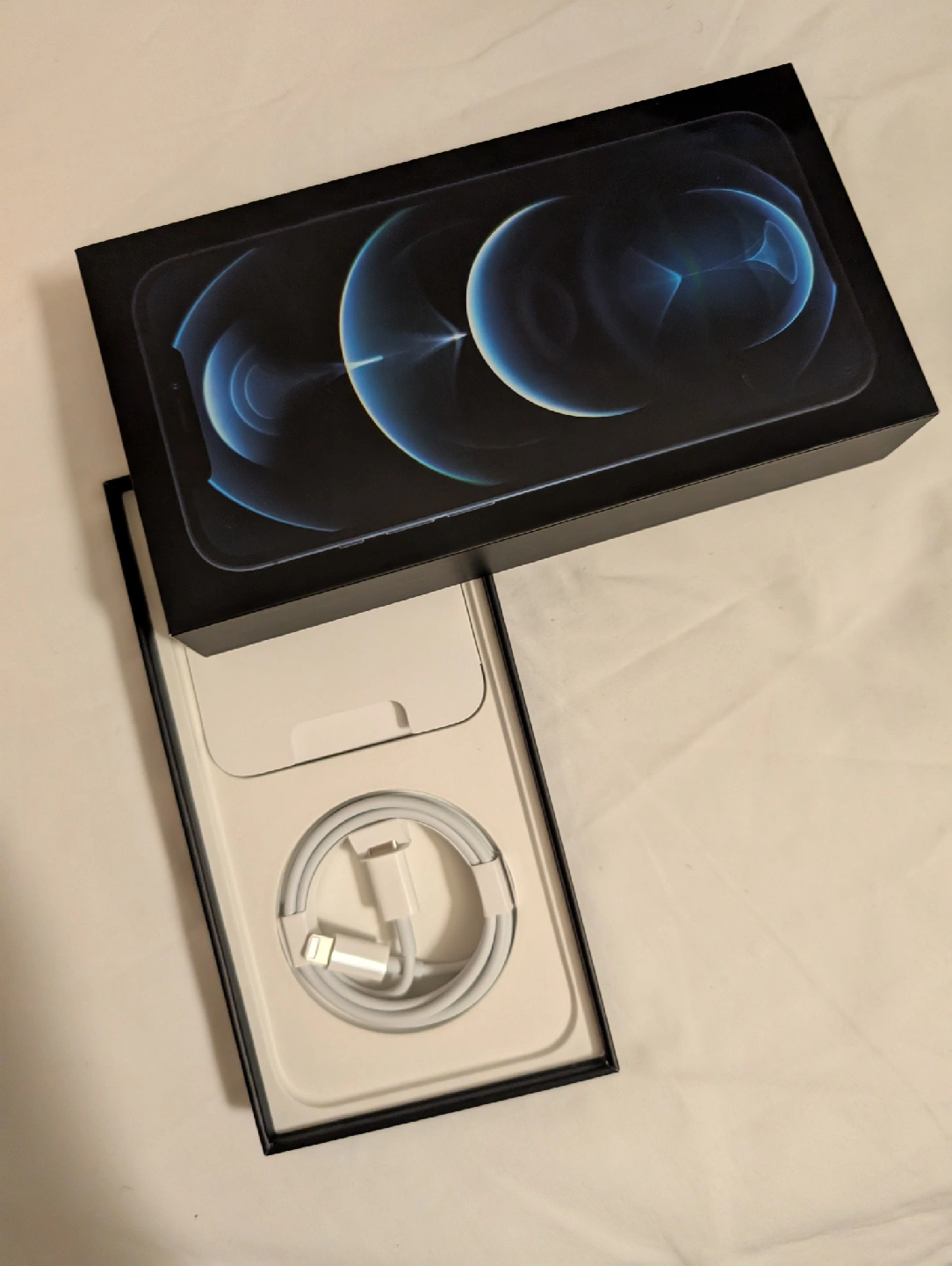 Selling a new iPhone 12 Pro Max in Pacific Blue with 128GB original BOX ONLY**** and includes all the components such as charging lightening cable Never been used! great for regifting or to use to store your current phone.